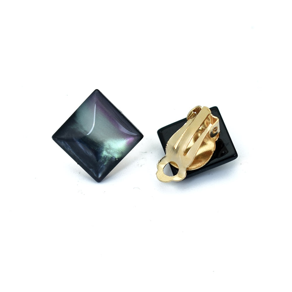 Pendientes de moda - Sin orificio para la oreja, color dorado, geométricos, cuadrados, redondos, con clip, para mujer, joyería de resina, pendientes tipo puño sin perforación