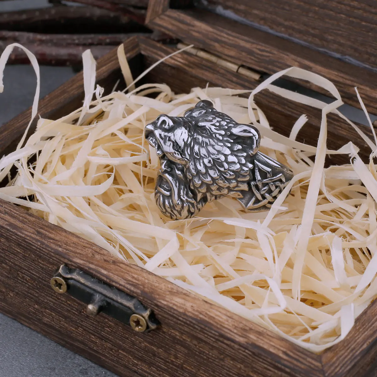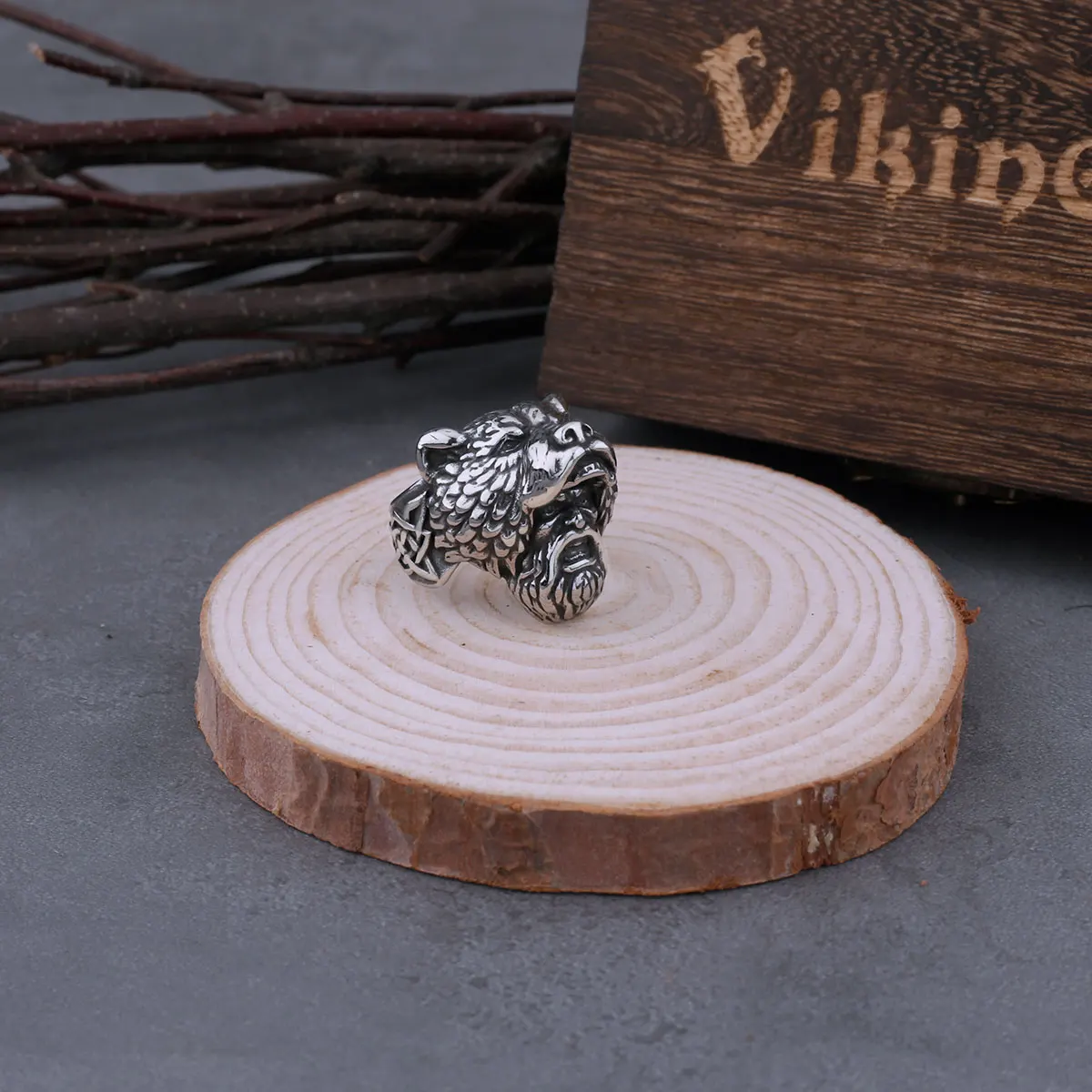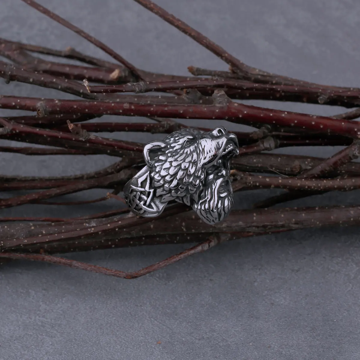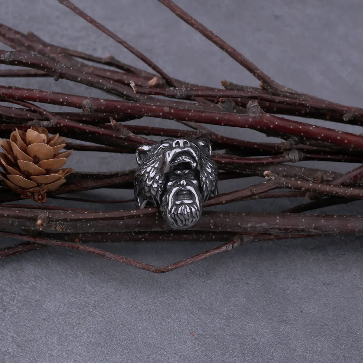Anillo de acero inoxidable con diseño de oso guerrero vikingo nórdico para hombre