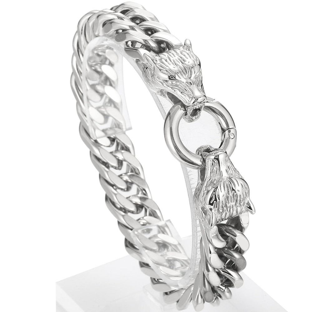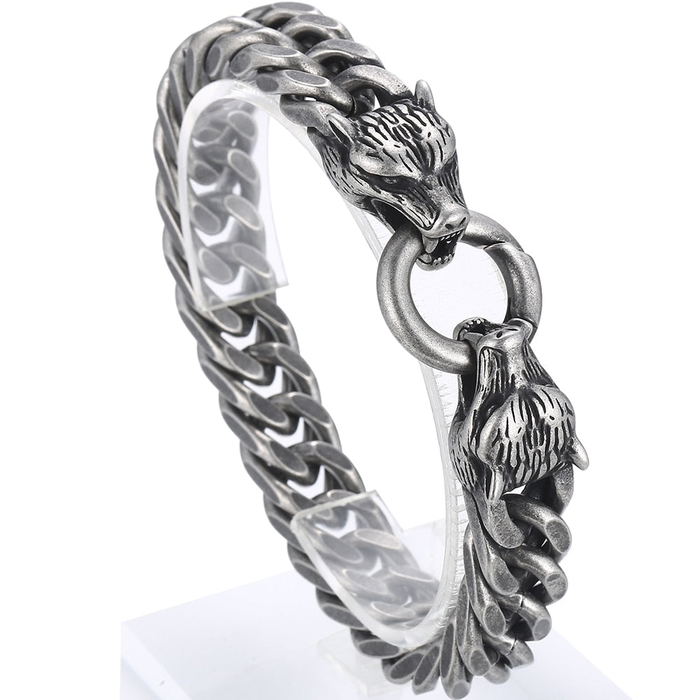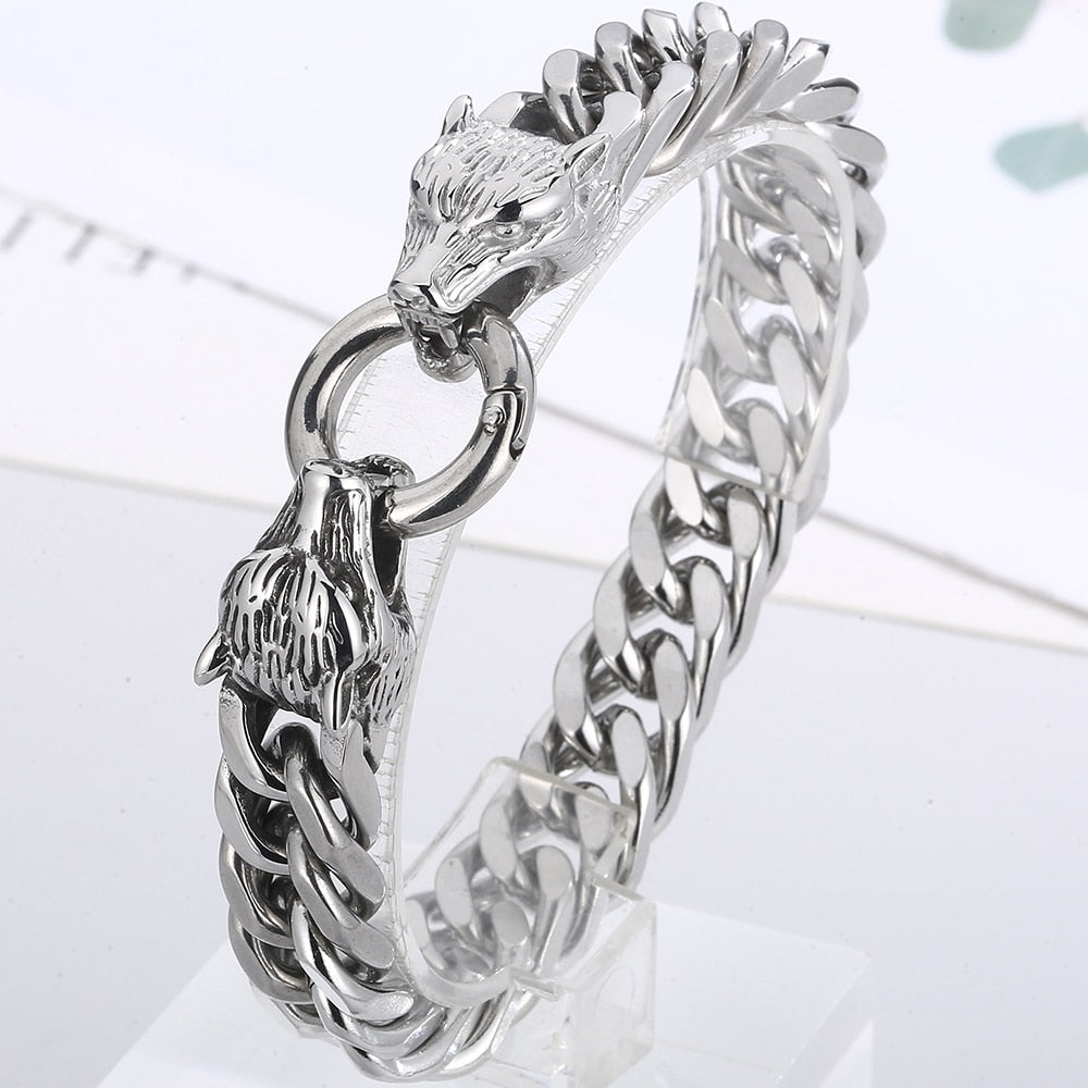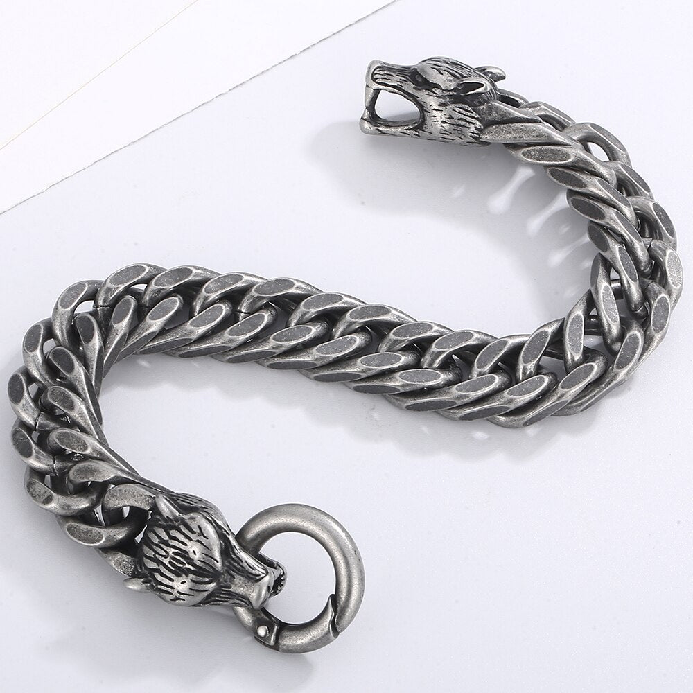 Pulsera de lobo vikingo nórdico para hombre, de acero inoxidable chapado en oro negro, cadena de eslabones de 12 mm, joyería nórdica punk.