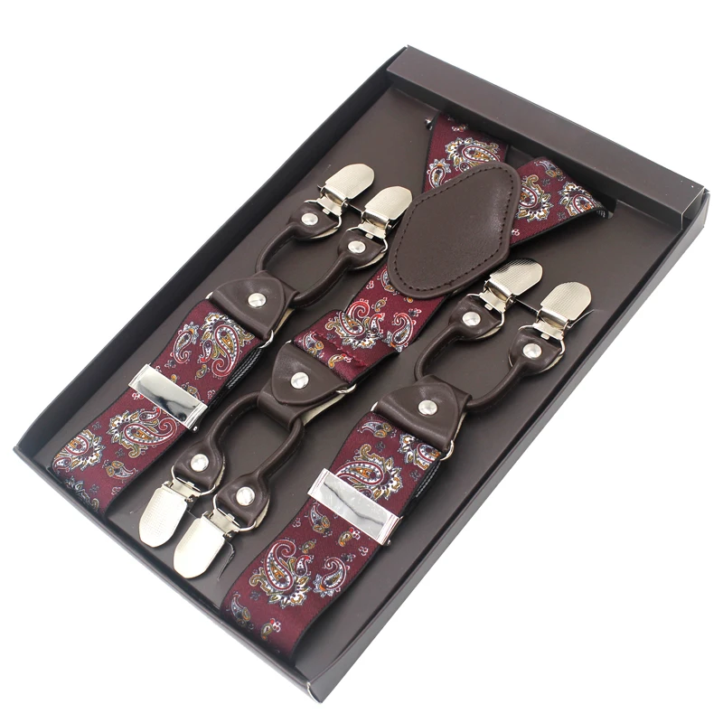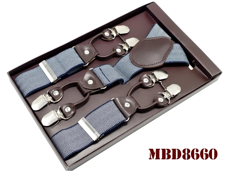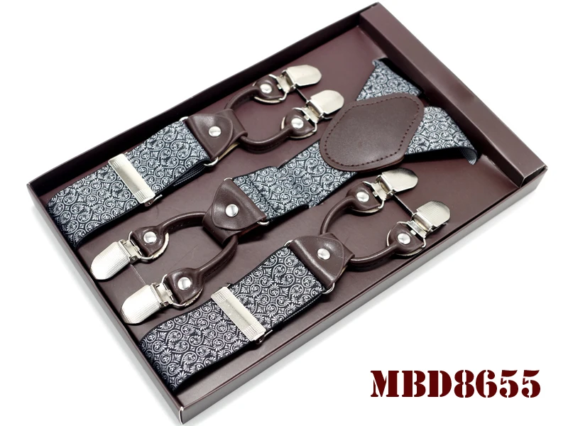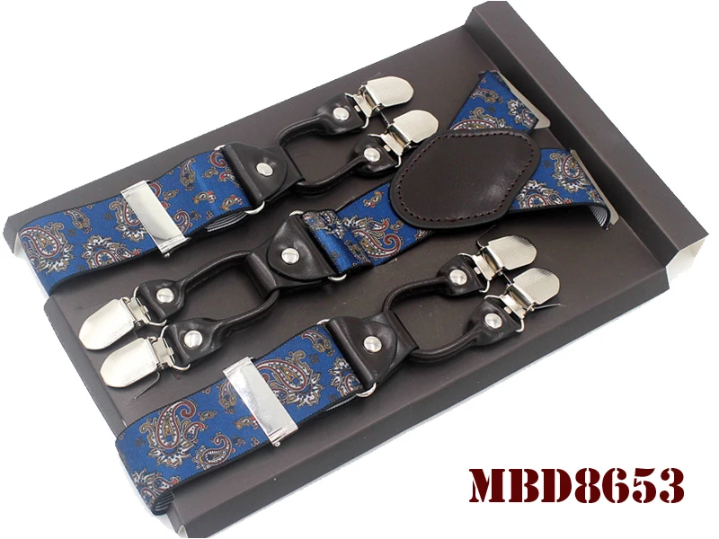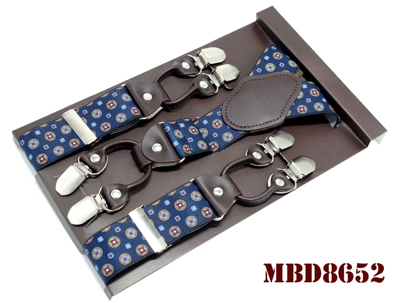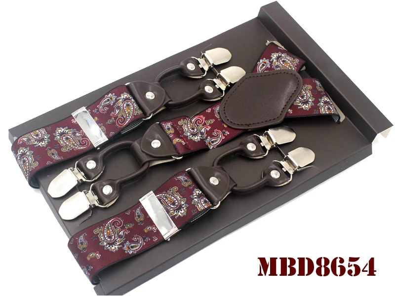 Tirantes de cuero jacquard para hombre, estilo western, con 6 clips, ajustables, 8 colores, MBD8652