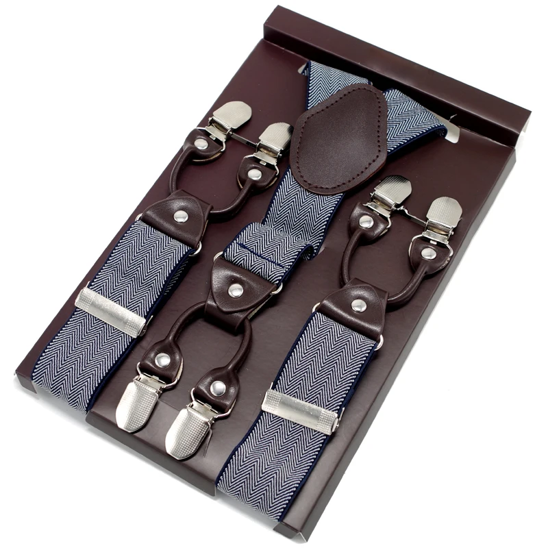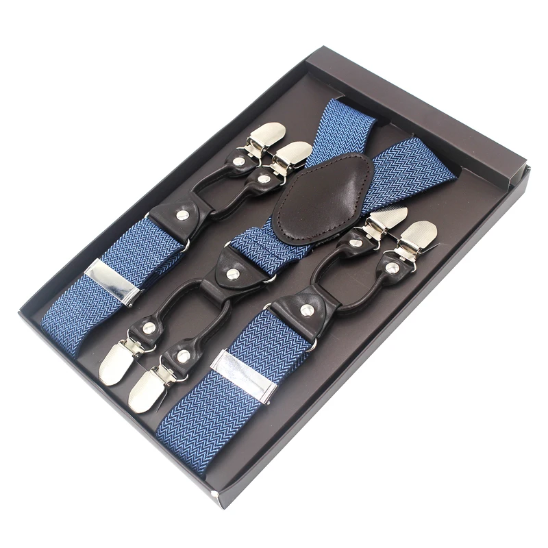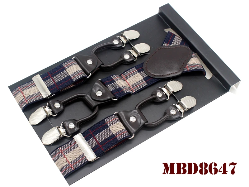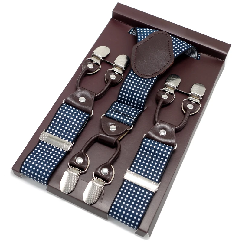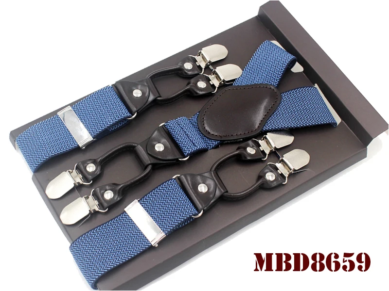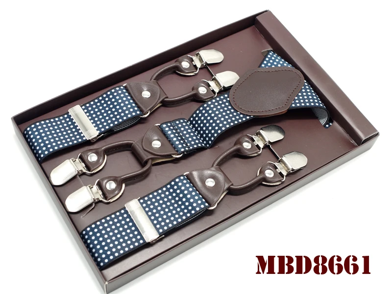 Tirantes de cuero jacquard para hombre, estilo western, con 6 clips, ajustables, 8 colores, MBD8652