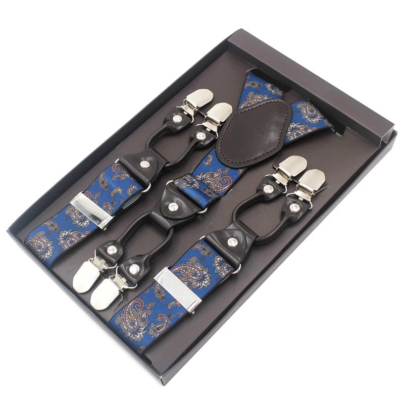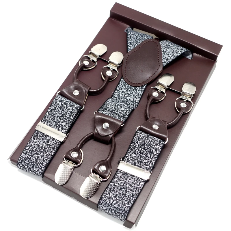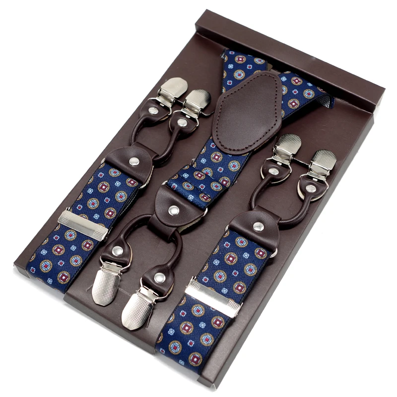Tirantes masculinos novedosos de cuero jacquard con 6 clips, estilo occidental, para pantalones.