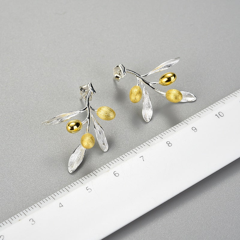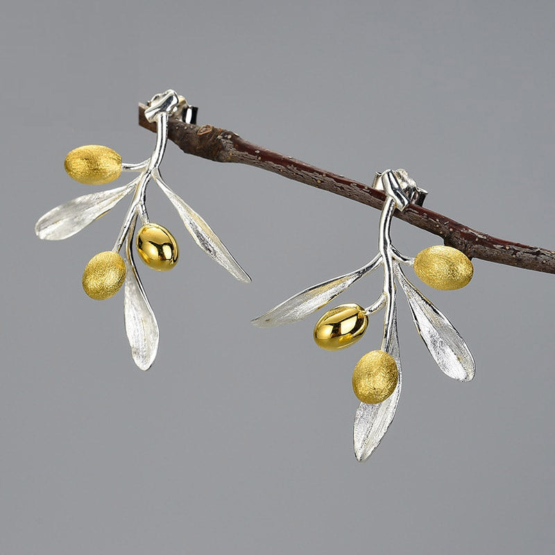 Pendientes de moda: hojas de olivo, ramas y frutos, pendientes inusuales para mujer, plata de ley 925, joyería de boda con estilo, tendencia nueva.