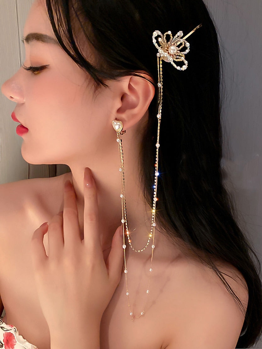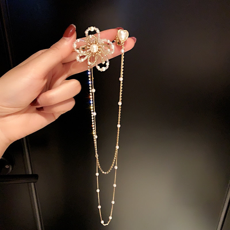 Pendientes de moda: una pieza de clip para el cartílago, con forma de corazón y flor, largos y colgantes para mujer.