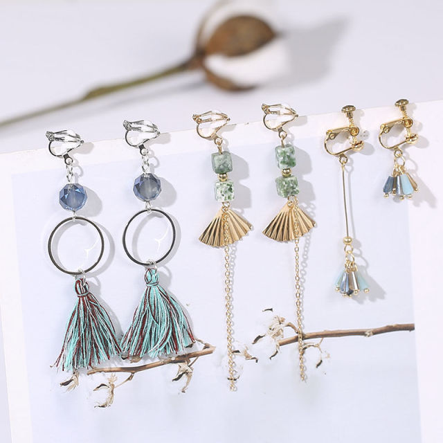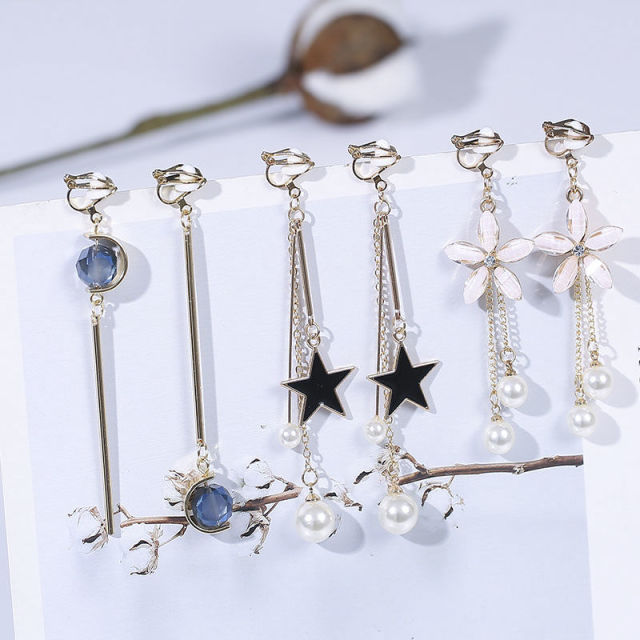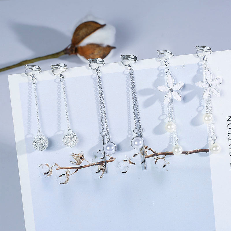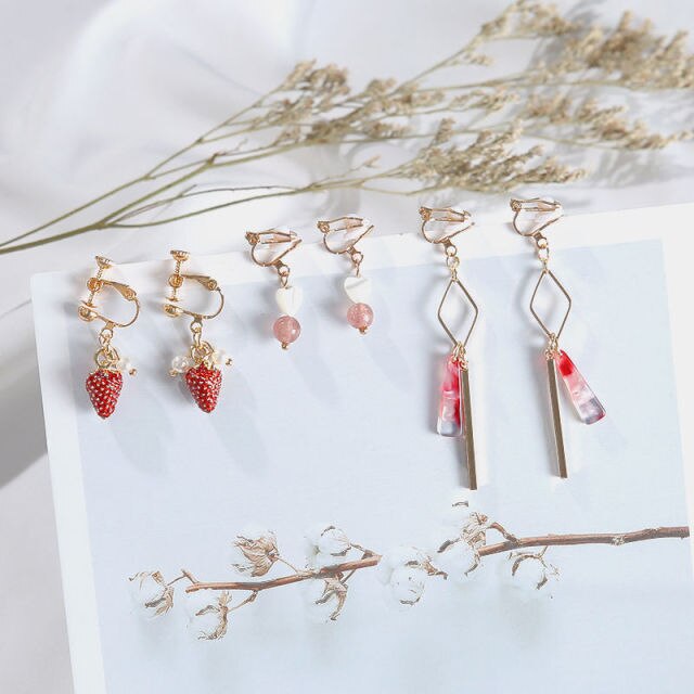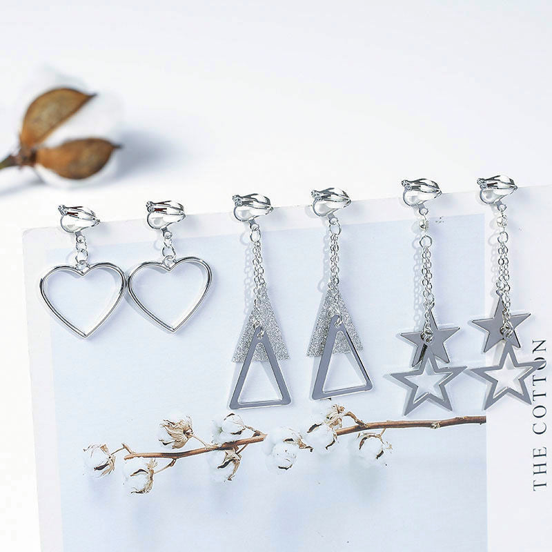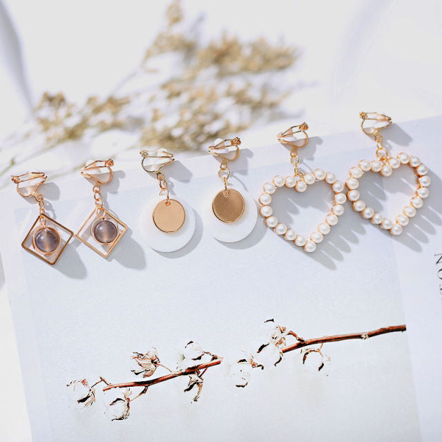 Un juego de 3 pares de pendientes de clip estilo coreano sin perforaciones