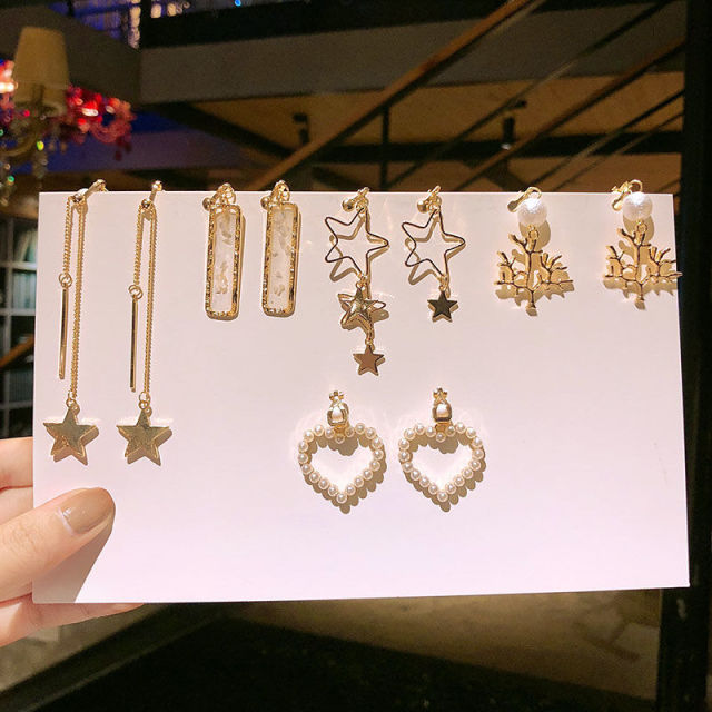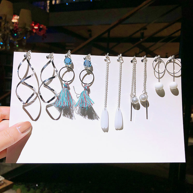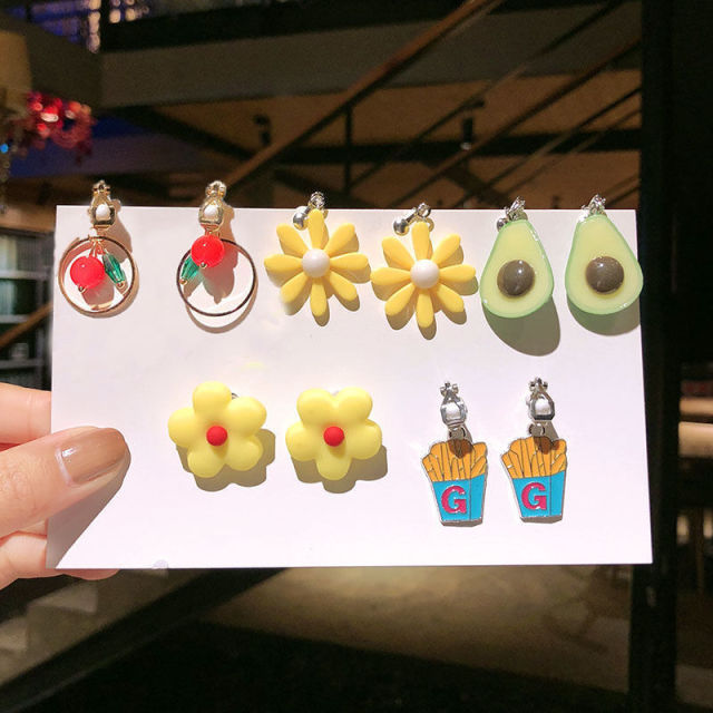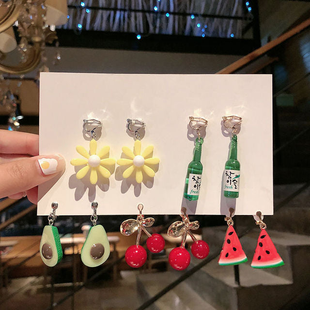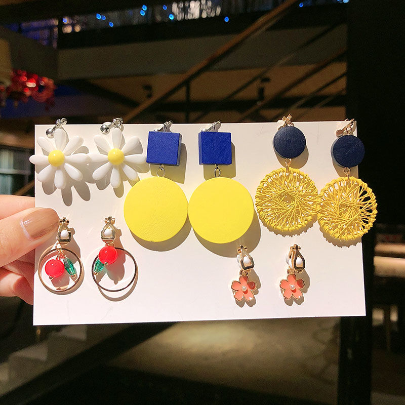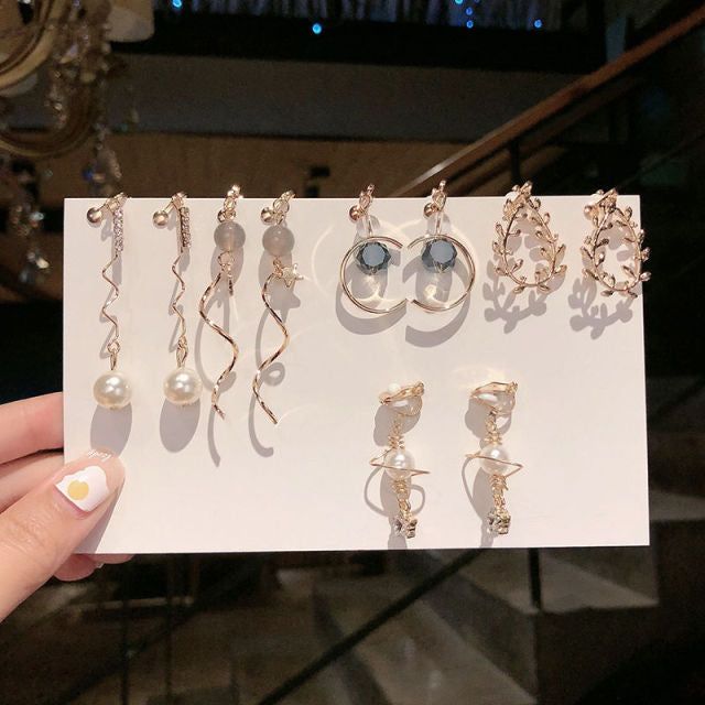 Un juego de 5 pares de pendientes de clip estilo coreano sin perforaciones