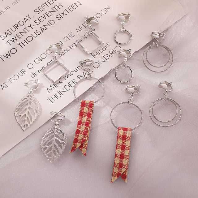 Pendientes de moda: un juego de 5 pares de pendientes de clip estilo coreano, sin perforaciones, estilo simple, pendientes de clip geométricos.