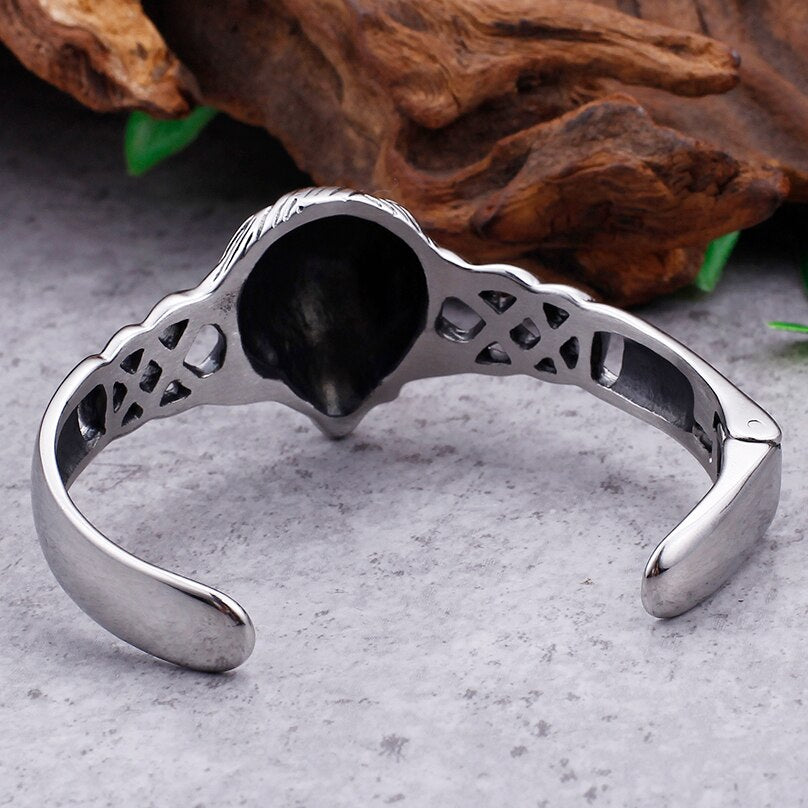 Brazalete abierto estilo punk rockero de acero inoxidable pulido con cabeza de león para hombre