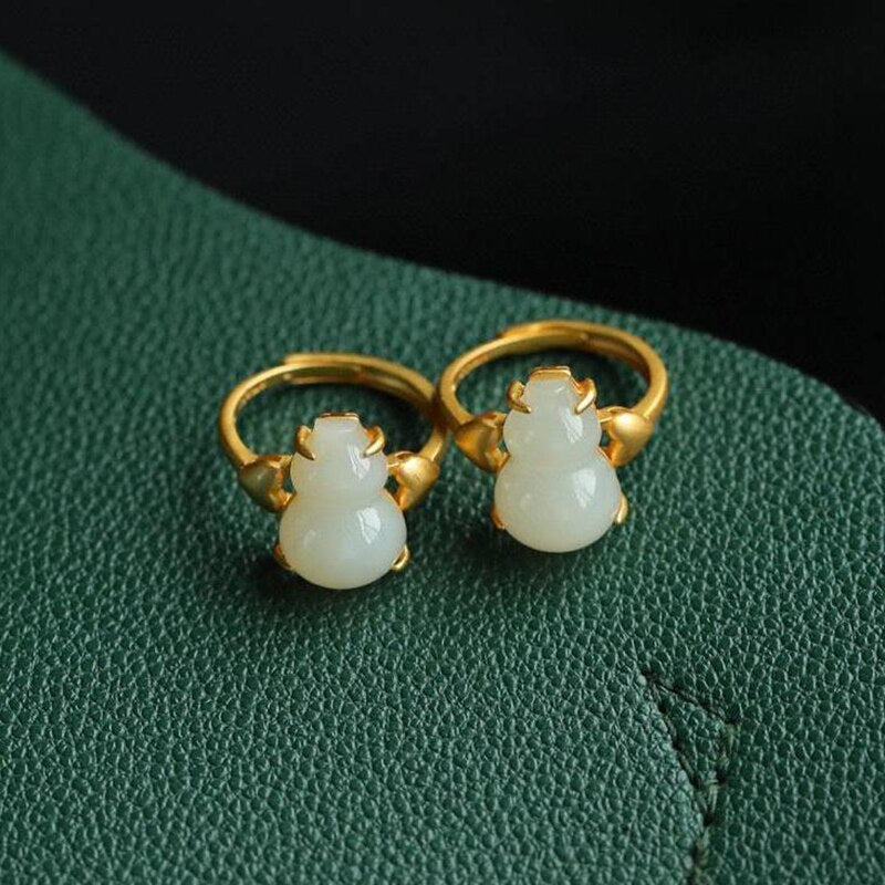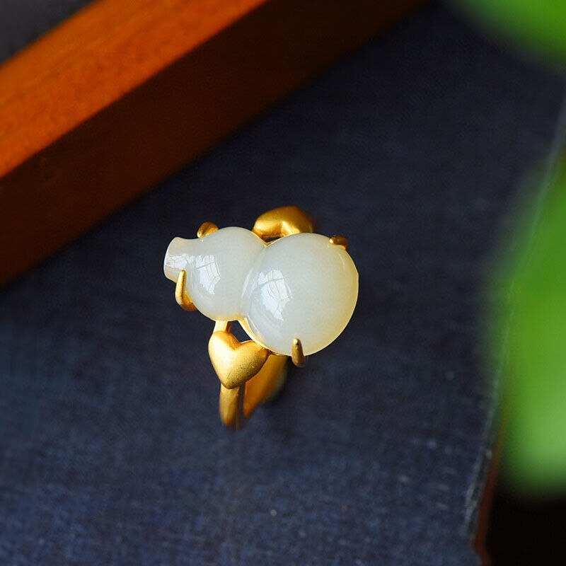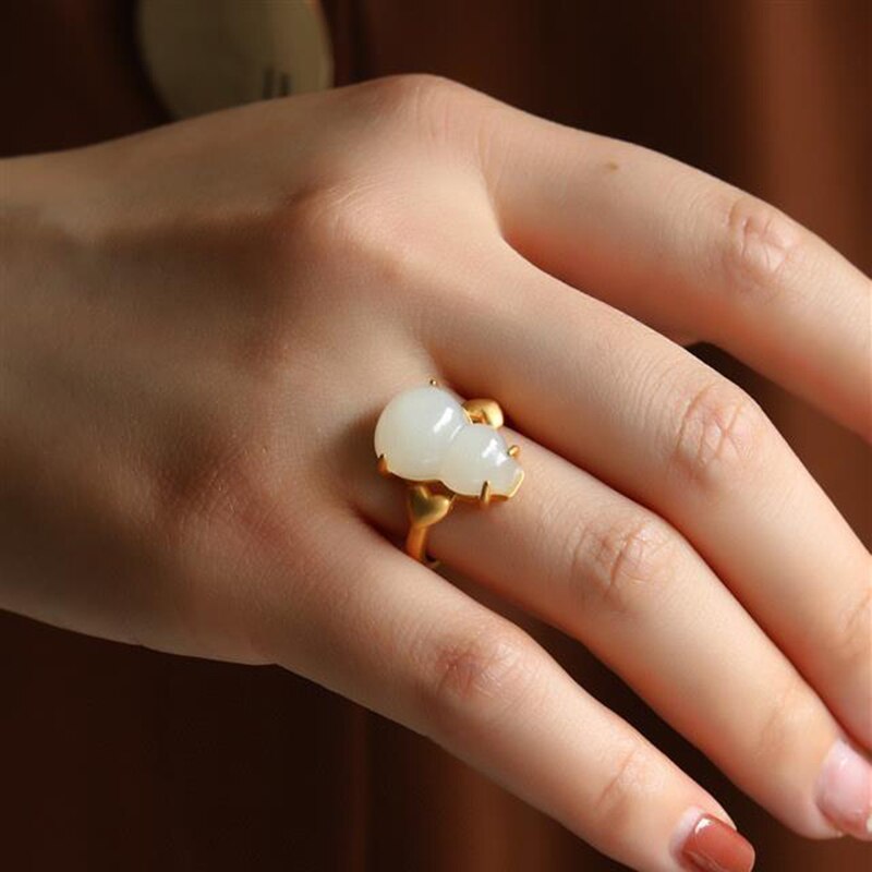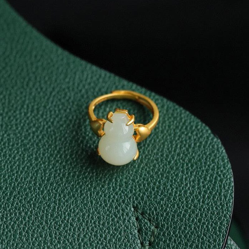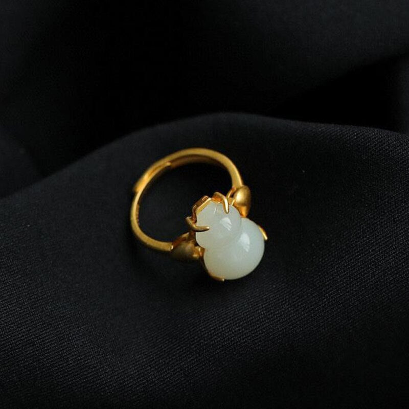 Anillo ajustable abierto de calabaza de jade hetiano natural, nuevo y original