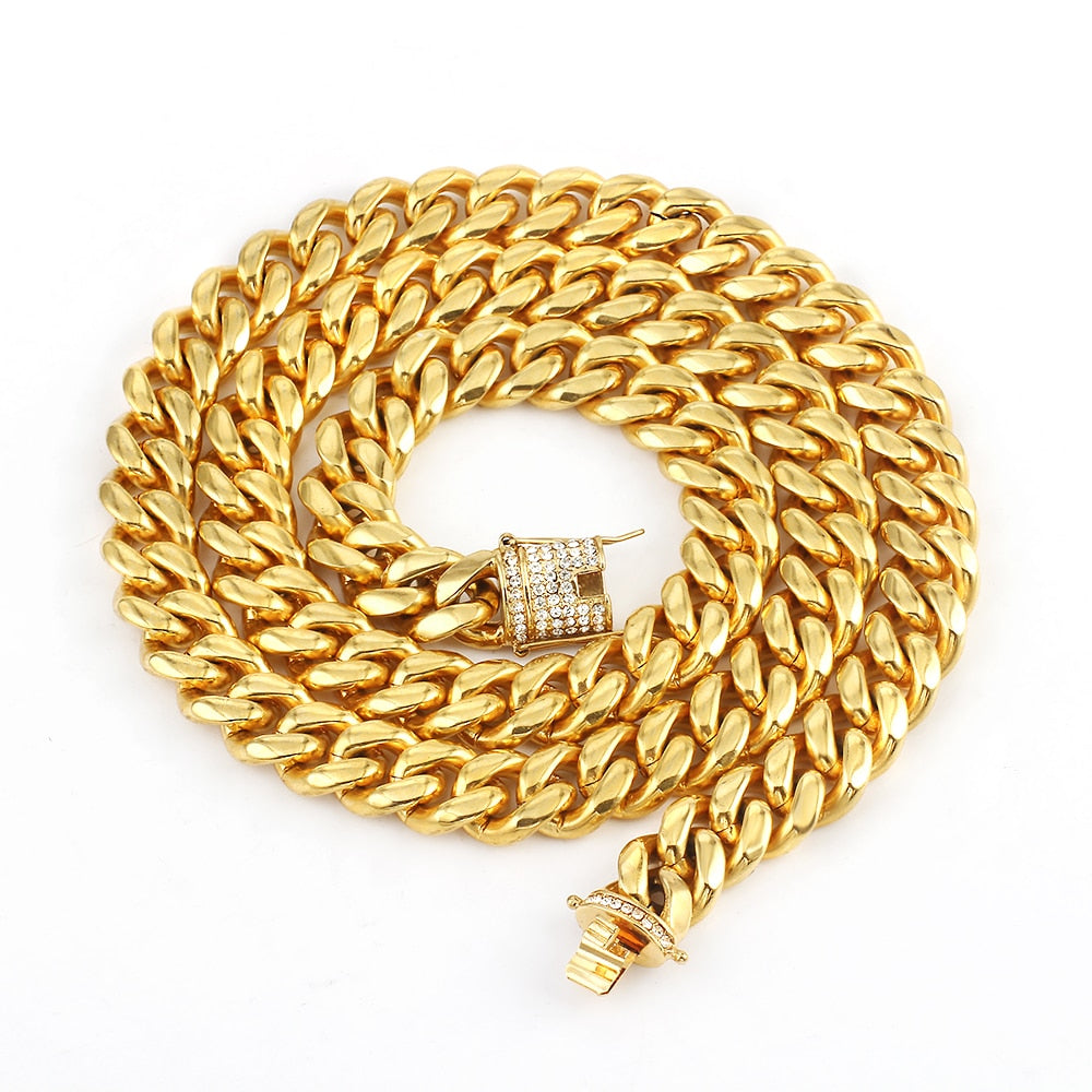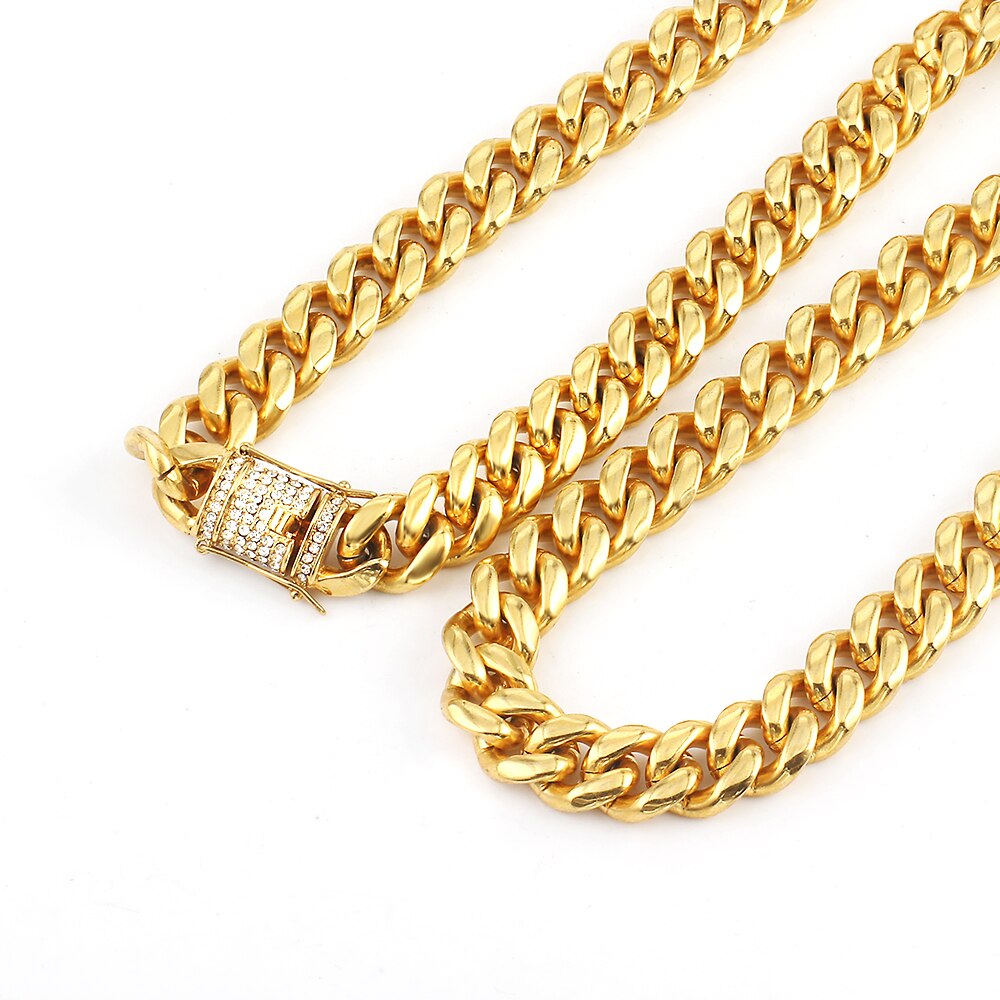 Collar de acero inoxidable de 6 a 14 mm para hombre y mujer, gargantilla, cadena de eslabones cubanos, collares dorados personalizables.