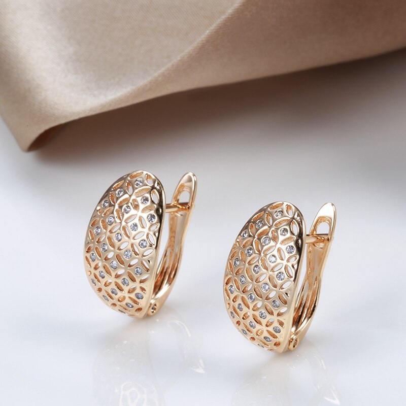 Pendientes de mujer con circonita natural con diseño geométrico hueco ovalado