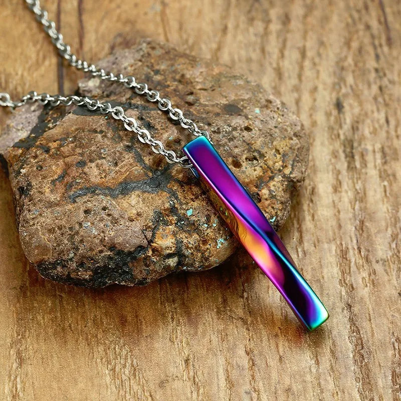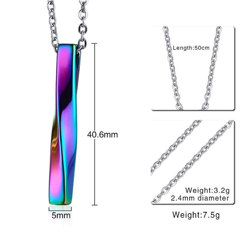 COLLAR CON COLUMNA RETORCIDA CUADRADA CON BARRA ARCOÍRIS PARA HOMBRES, ACERO INOXIDABLE, JOYERÍA PARA PAREJAS, HOMBRES Y MUJERES