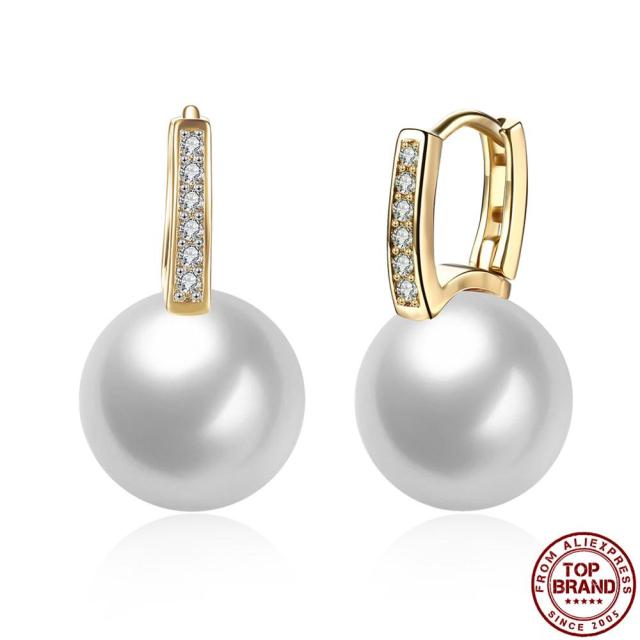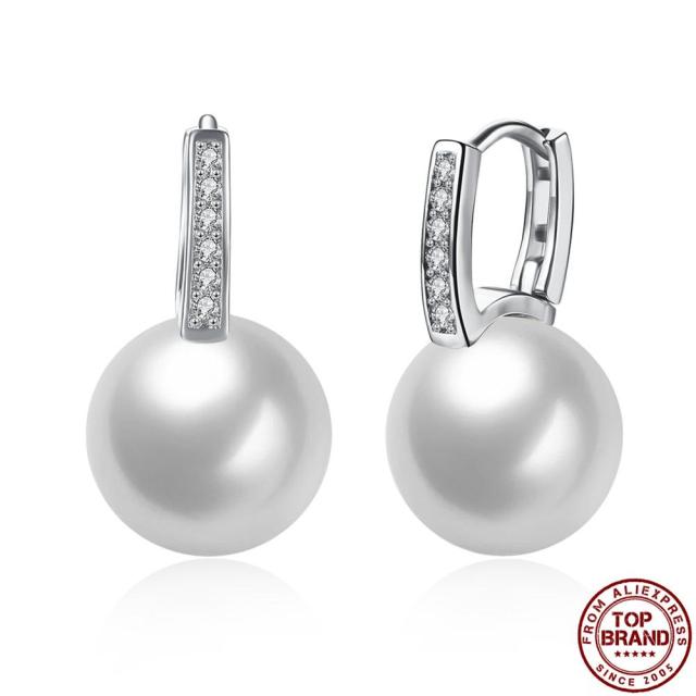 Pendientes de moda: pendientes de perlas para mujer, pendientes de clip de circonita brillante, regalos de cumpleaños para novias, joyería de moda con clip para las orejas.