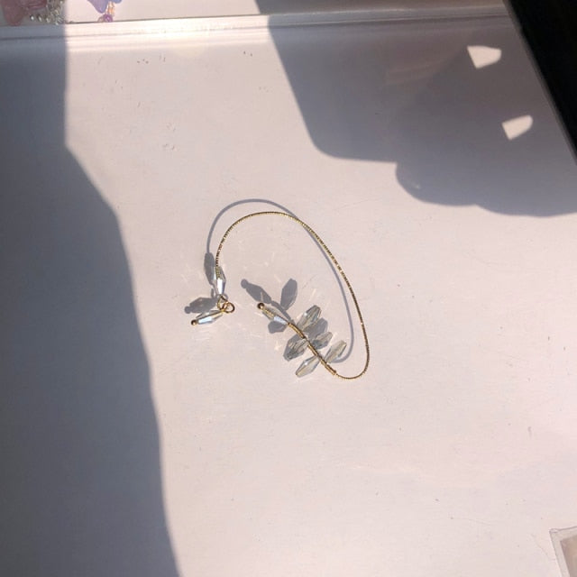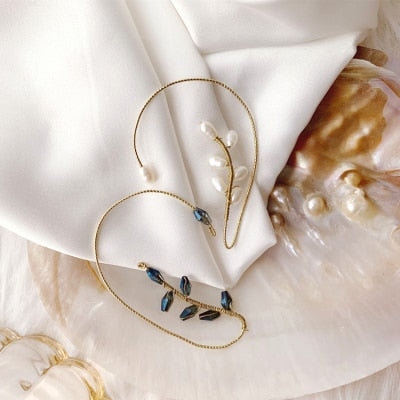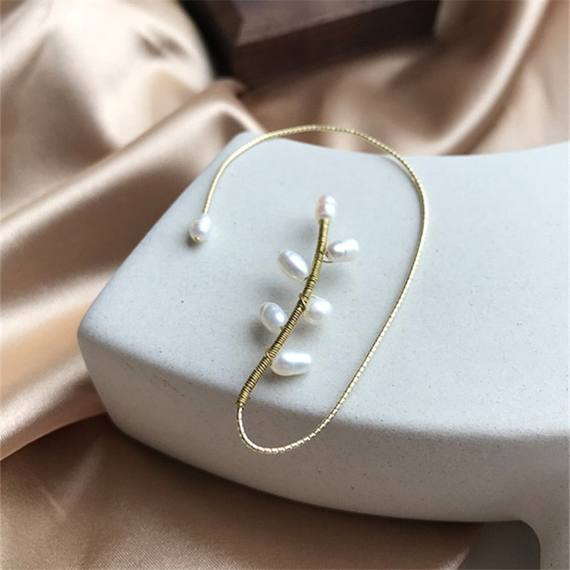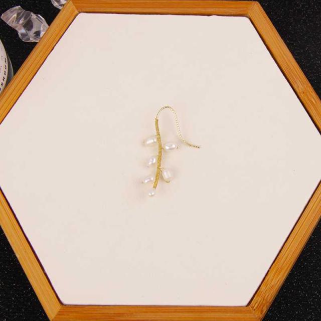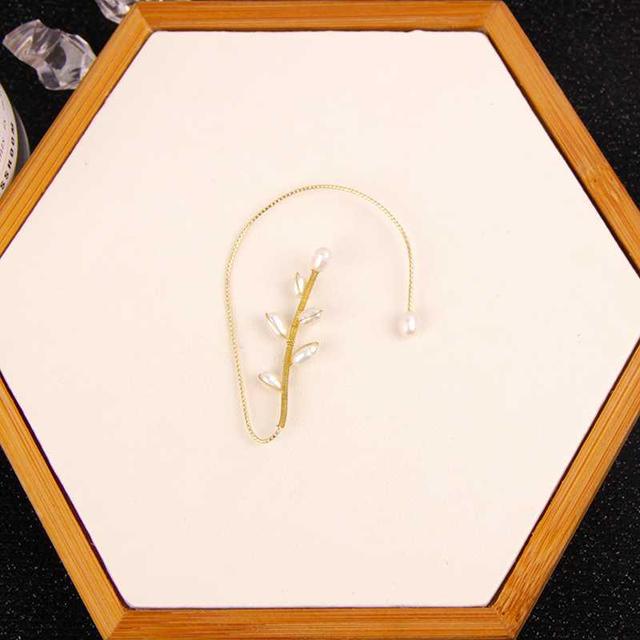 Pendientes de moda con forma de perla de agua dulce, hojas, asimetría, clip para el hueso de la oreja, gancho para la oreja, sin perforaciones, joyería para mujer, regalo