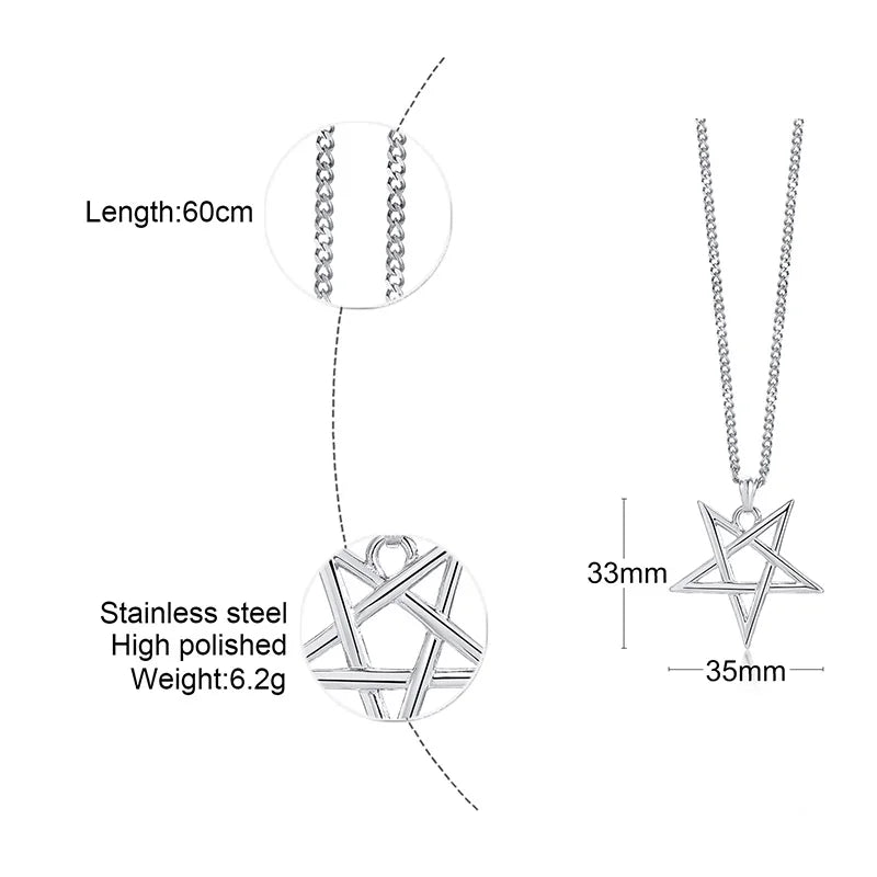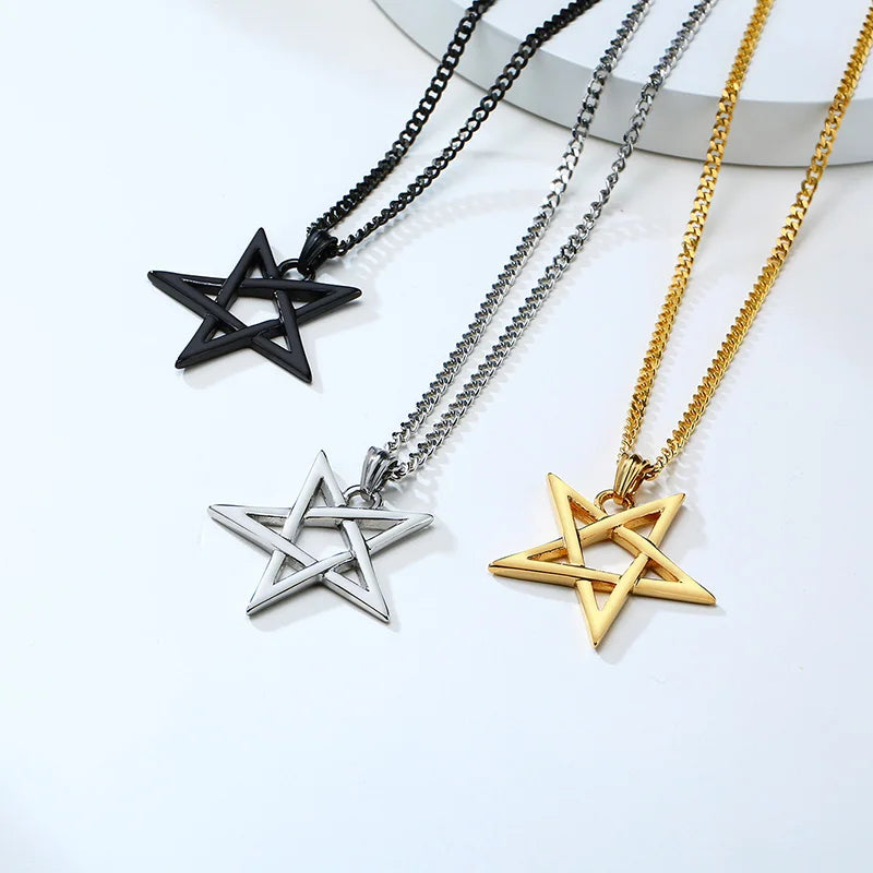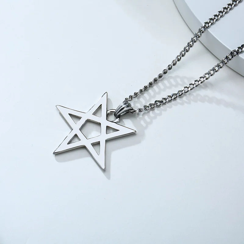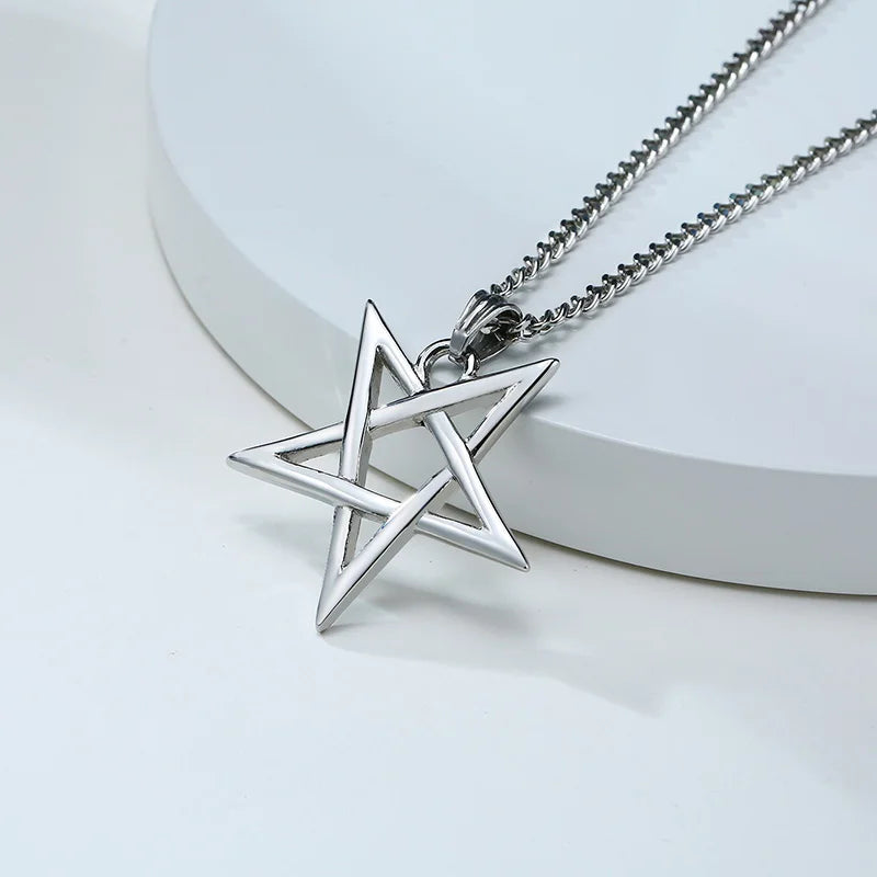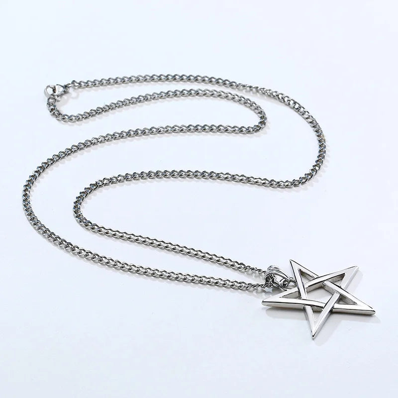 Collar con colgante de pentagrama y pentáculo de acero inoxidable, apilable o para usar solo, para hombre, de 24 pulgadas