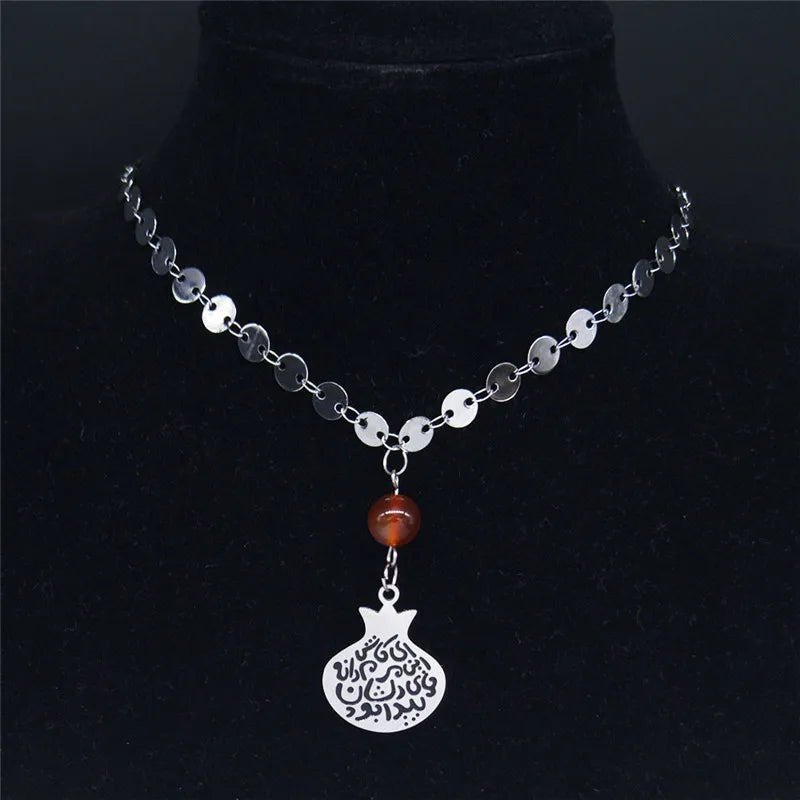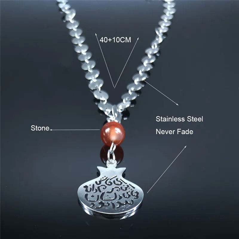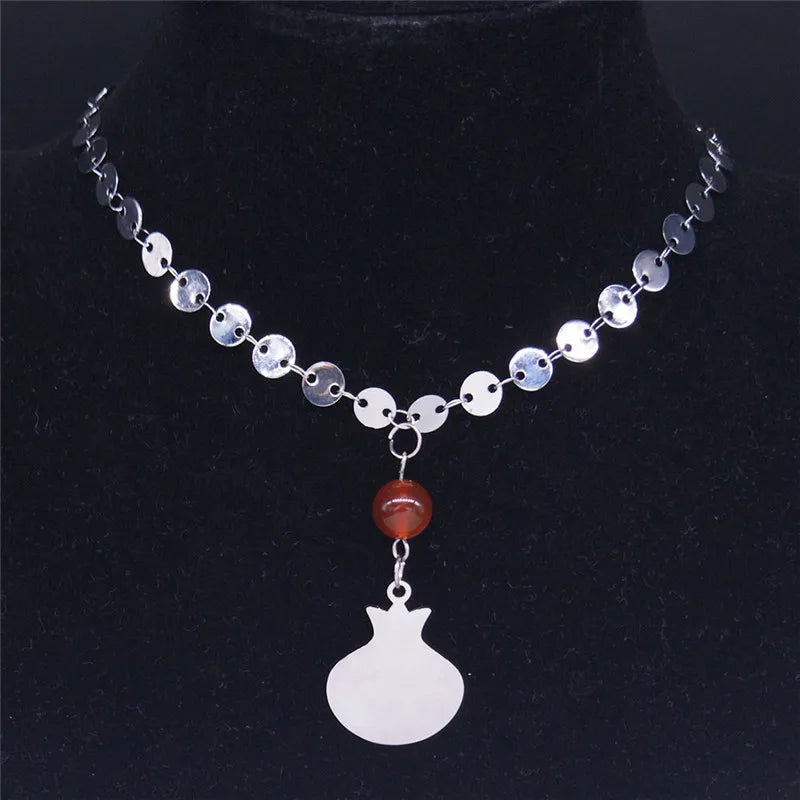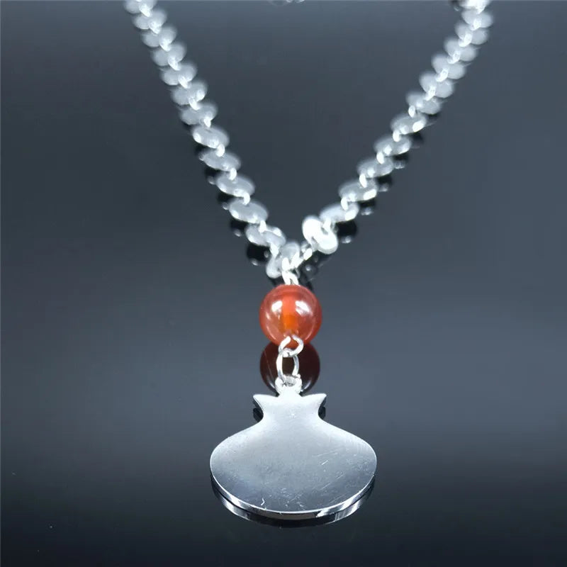 Collar de piedra de granada persa de acero inoxidable para mujer, collar de color plata, joyería, cadenas para mujer