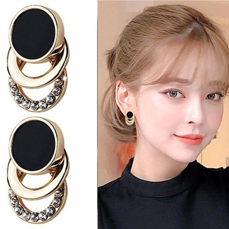 Pendientes de moda con personalidad, geométricos negros, compactos y sencillos, con clip y diamantes de imitación, ideales para combinar con todo, regalo para mujer.