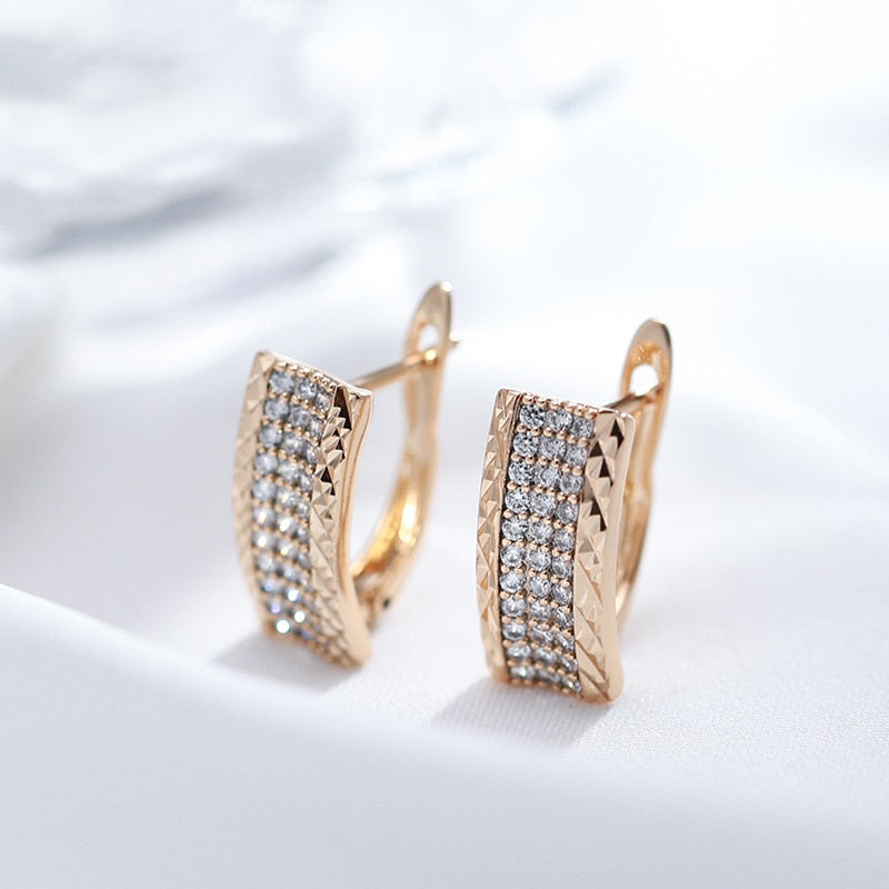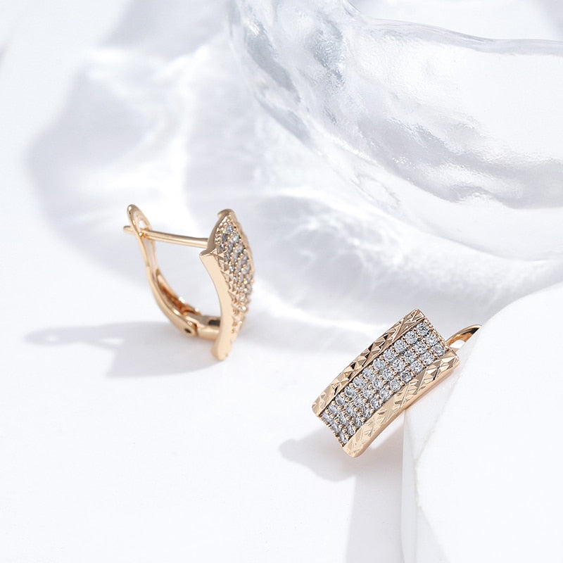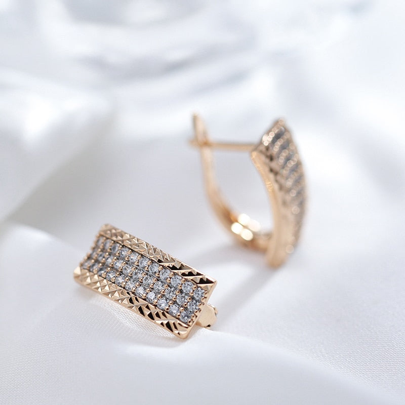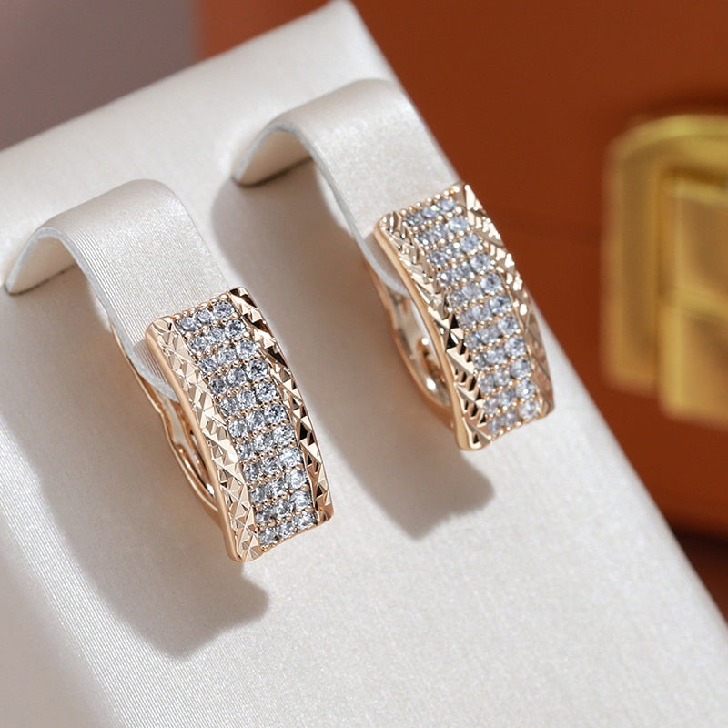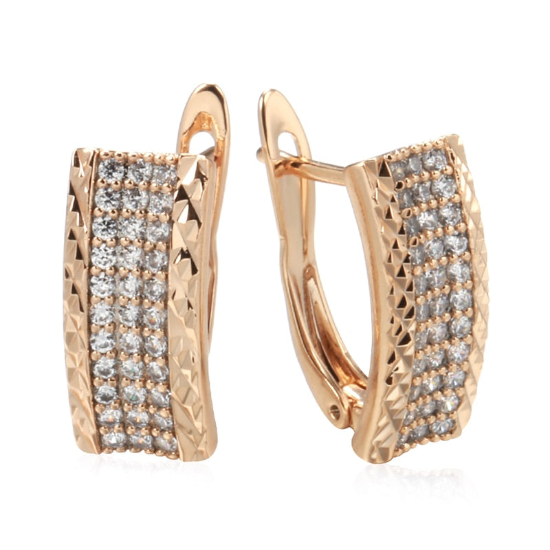 Pendientes de oro 585 con textura en relieve y circonitas para mujer, accesorios de moda, pendientes clásicos de oro 585.