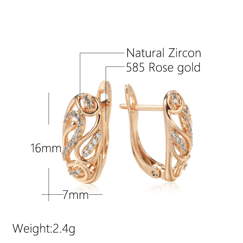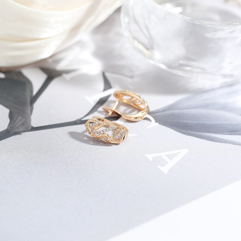 Pendientes de clip con textura hueca y circonita blanca para mujer, de oro rosa 585, joyería fina de moda para el día a día.
