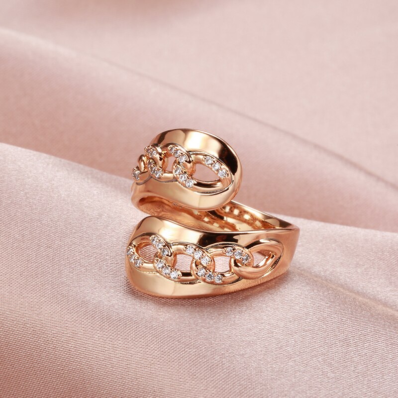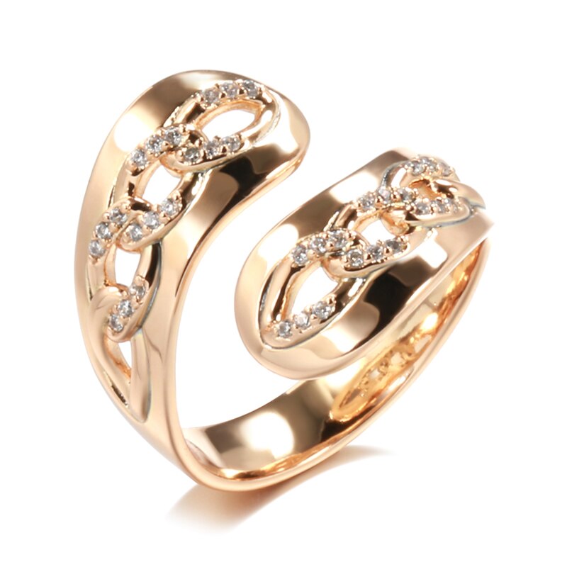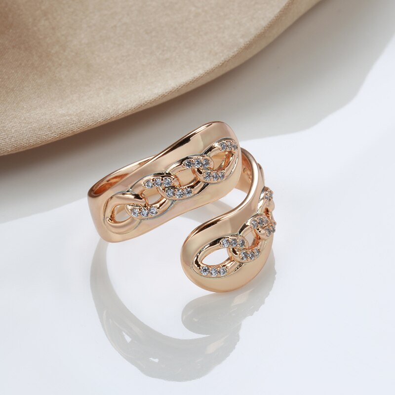 Joyería de oro 585: anillos abiertos ajustables con cadena torcida y personalidad, de oro 585 con circonita blanca, anillos de moda para mujeres y niñas, joyería inusual para fiestas.