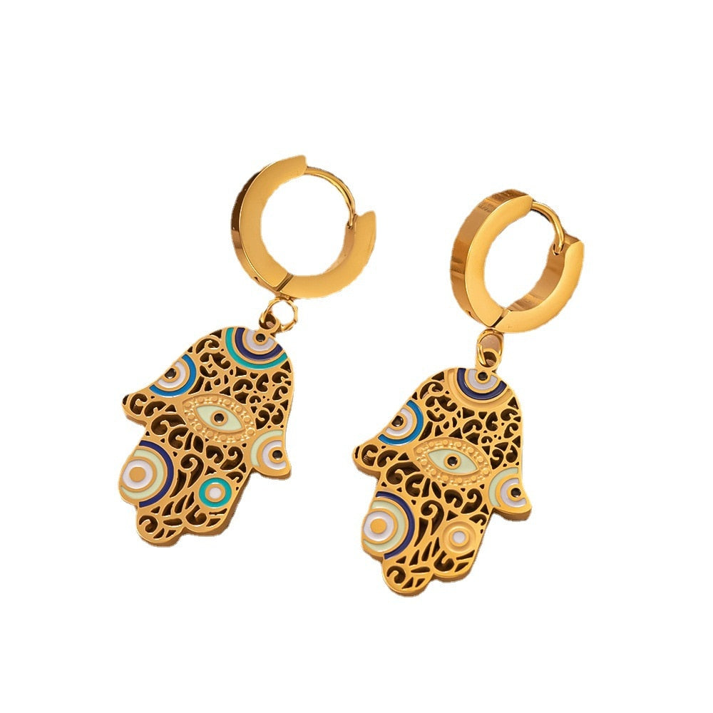 Joyería de oro 585 - Colgante de palma de ojo personalizado de acero inoxidable 316L, cadena cubana, colgante ahuecado, pulsera, collar, pendientes, conjunto de joyas
