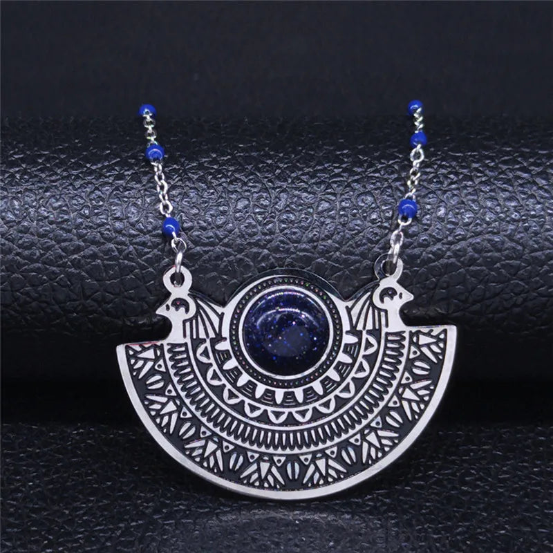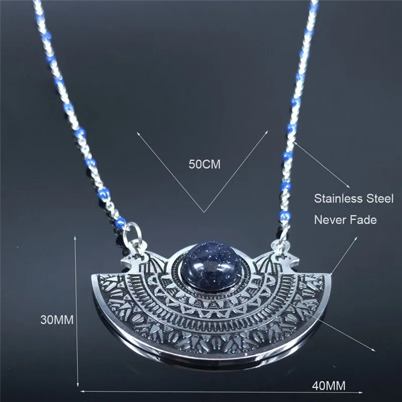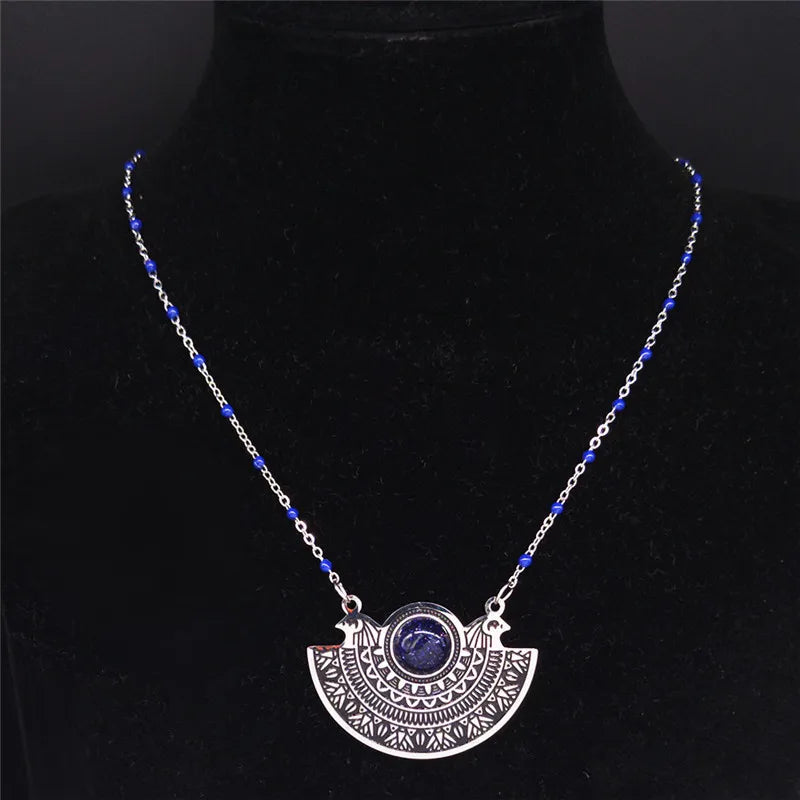 Collar de acero inoxidable con diseño de ave fénix para mujer, color azul, con piedra natural.
