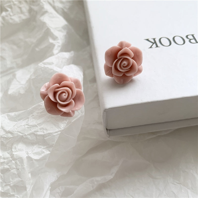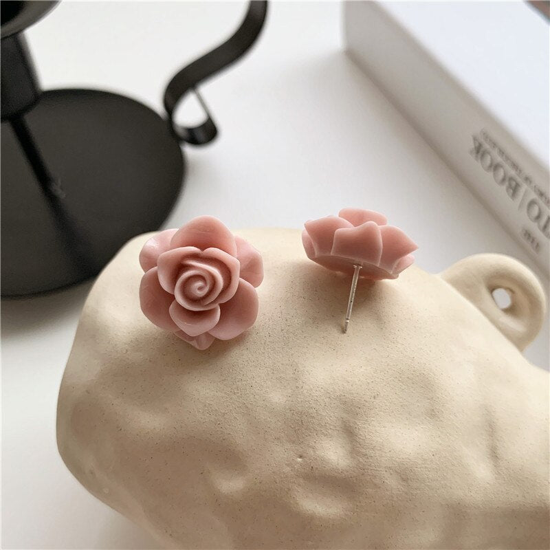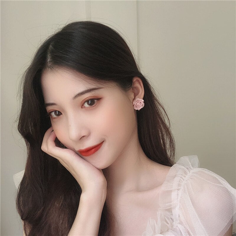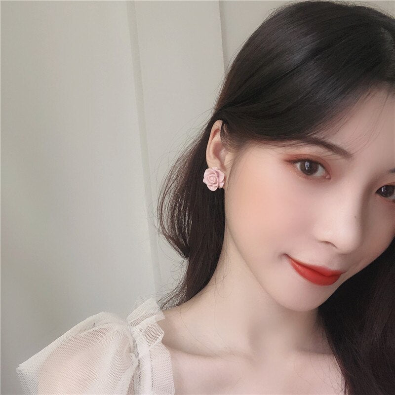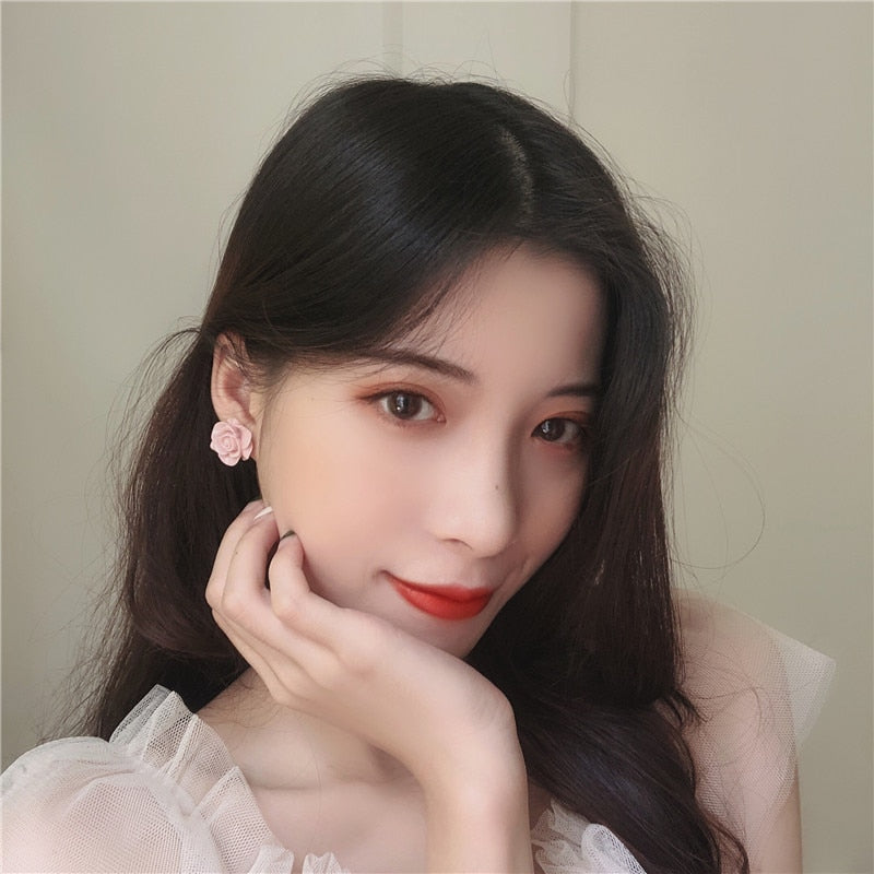 Pendientes de moda: grandes pendientes de clip con rosas rosas sin perforar, elegantes y lujosos pendientes de novia.
