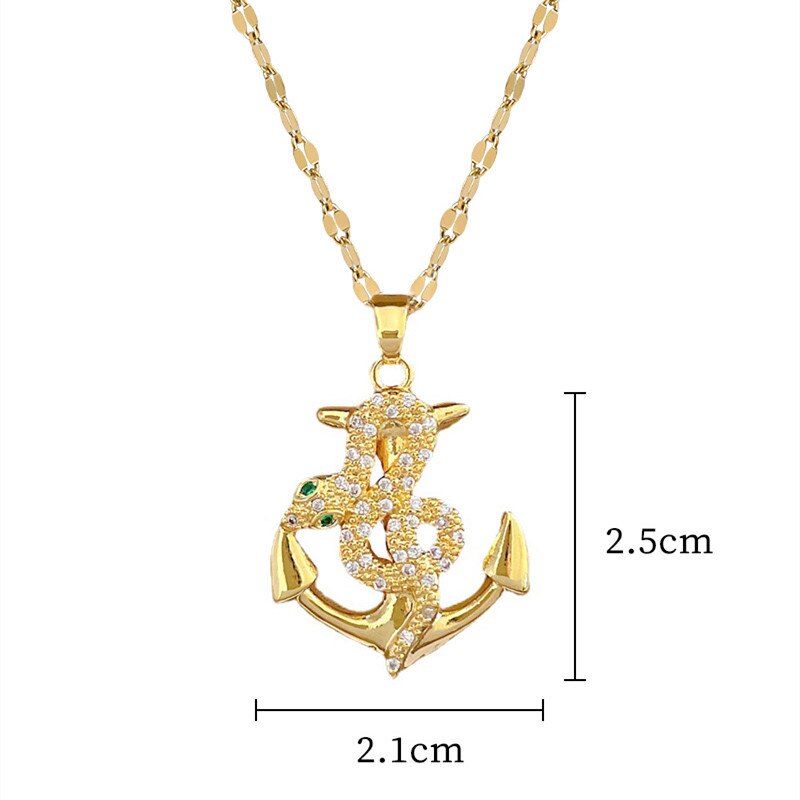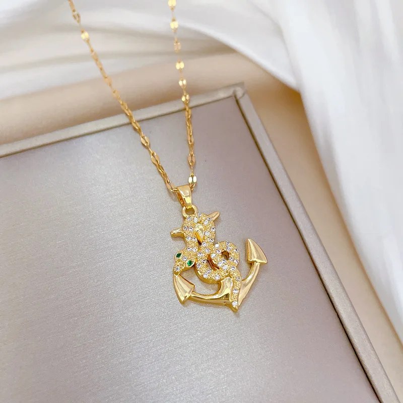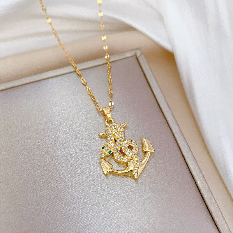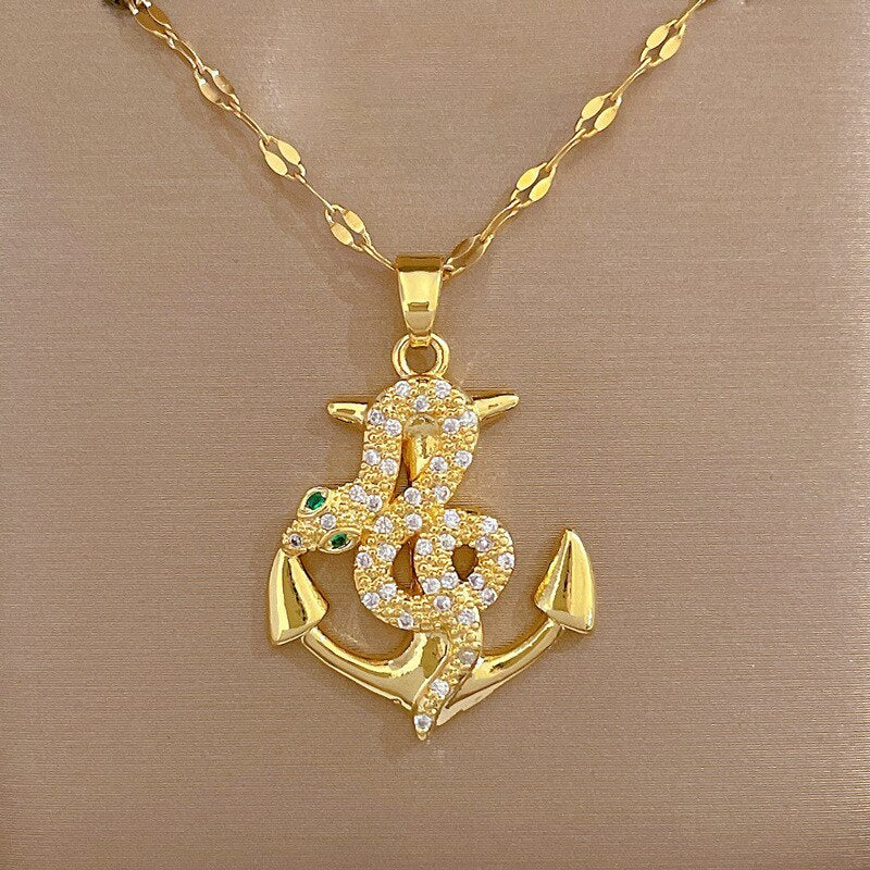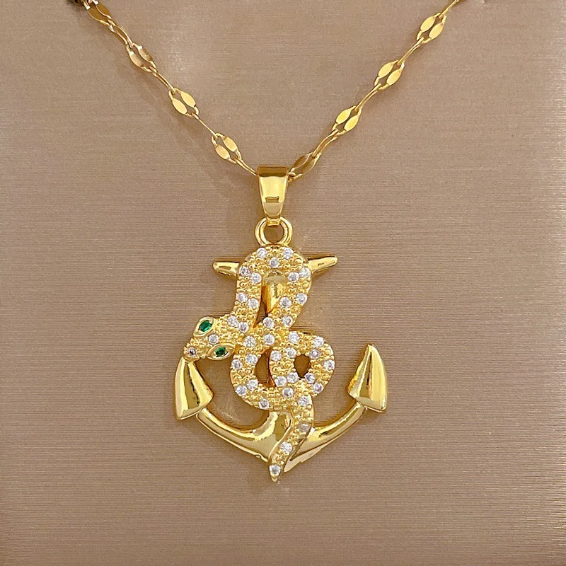 Collar con colgante de ancla pirata en forma de serpiente de acero inoxidable 316L, joyería de oro 585, para mujeres y niñas, regalo de cumpleaños, joyería bohemia con personalidad.