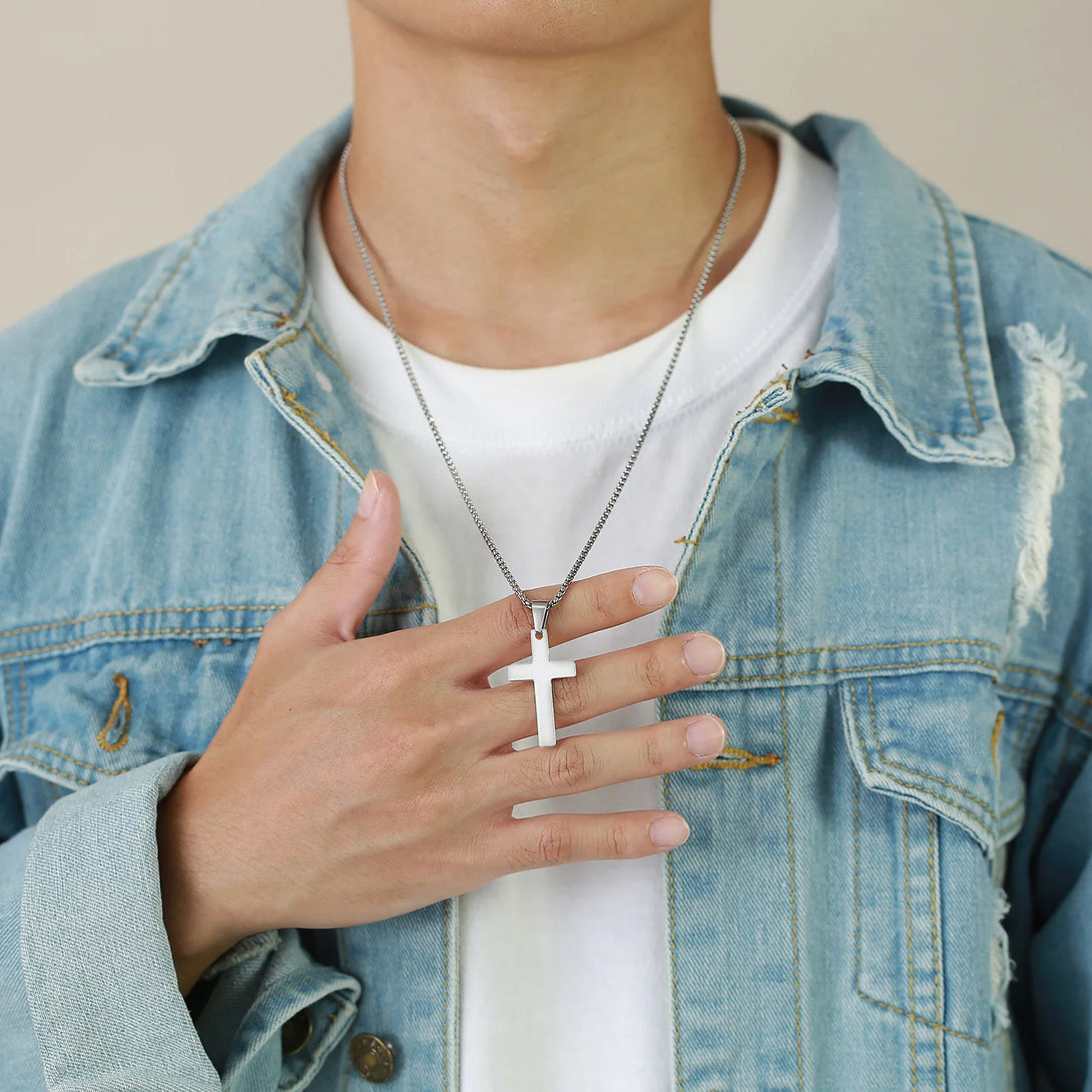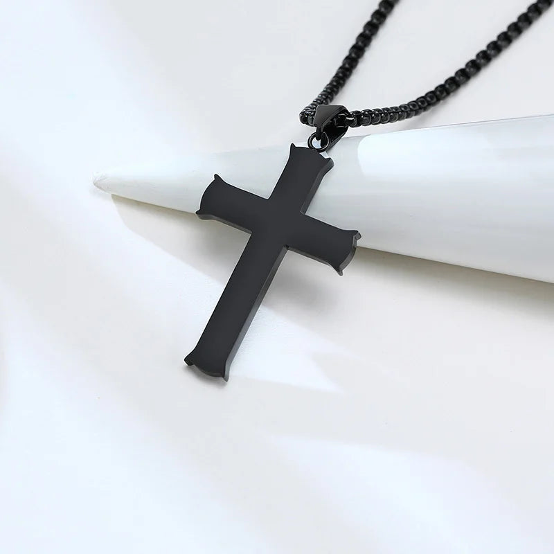 Collar con colgante de cruz simple para hombre, color plata, negro y dorado, de acero inoxidable.