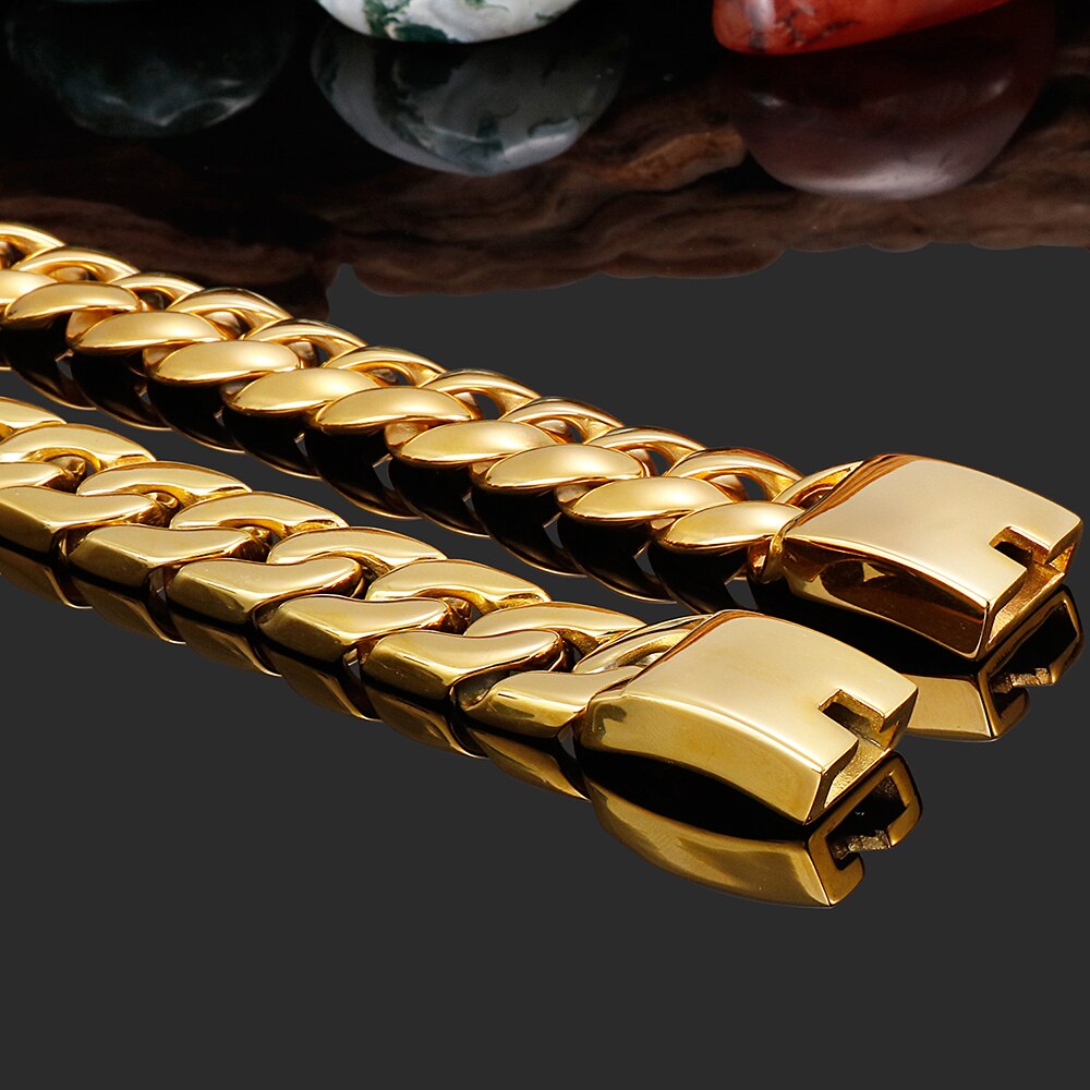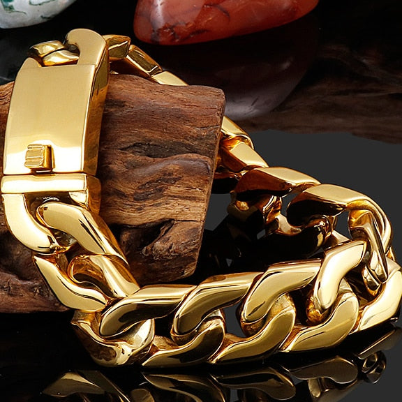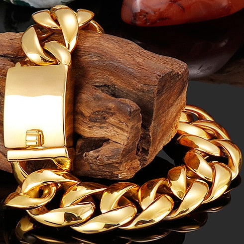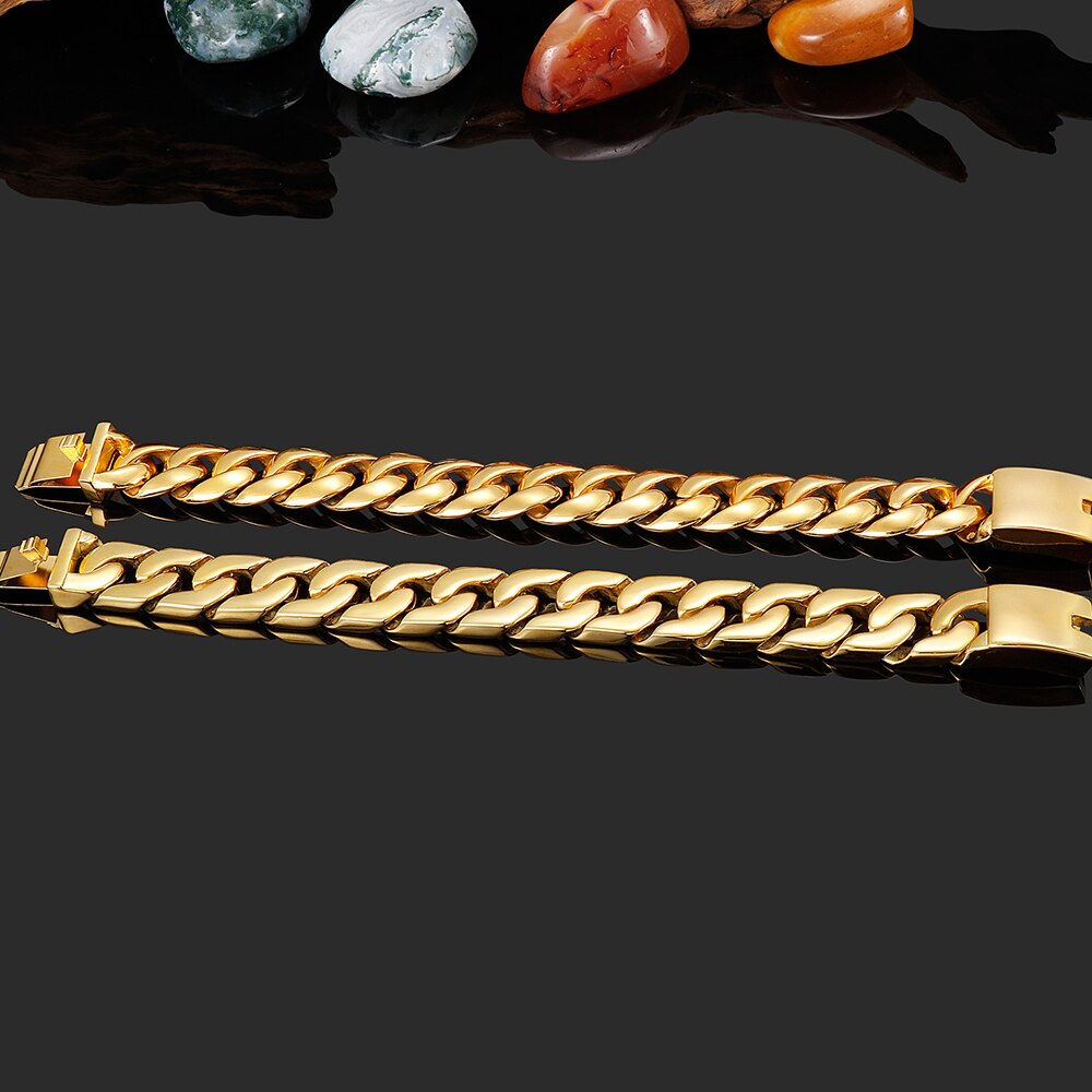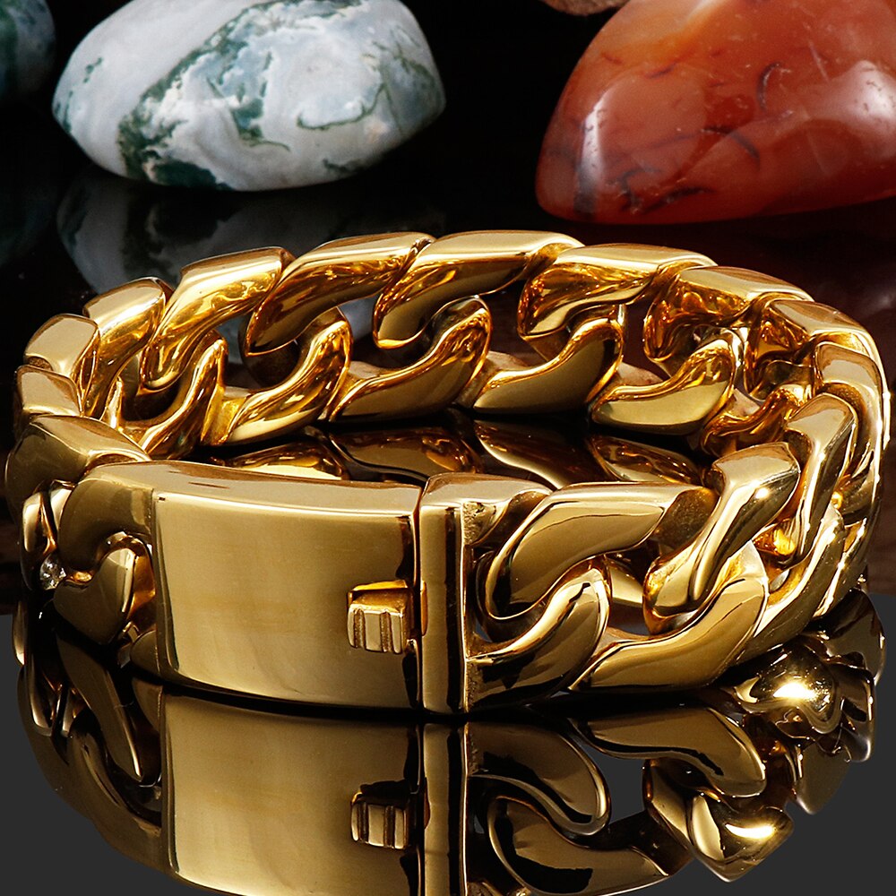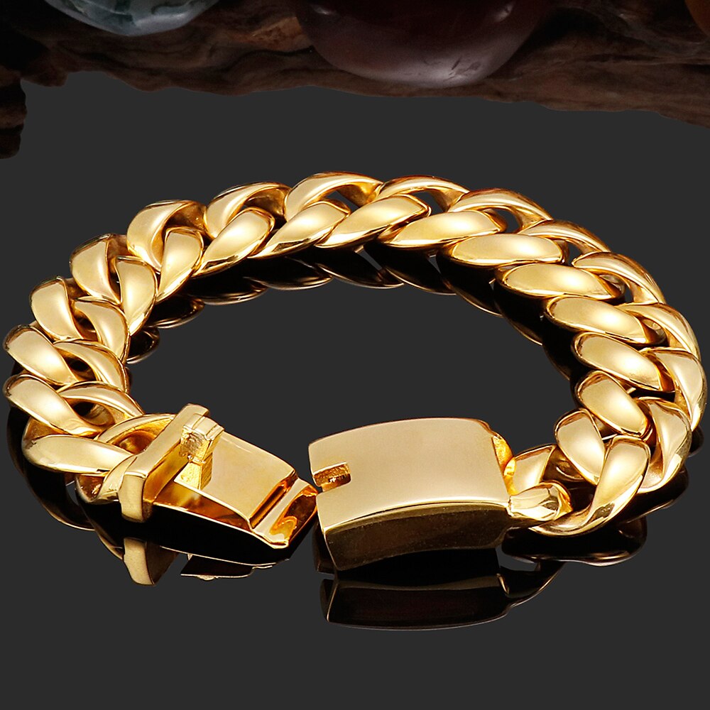 Pulsera de acero inoxidable chapada en oro pulido para hombre. Pulseras de mano para niño.