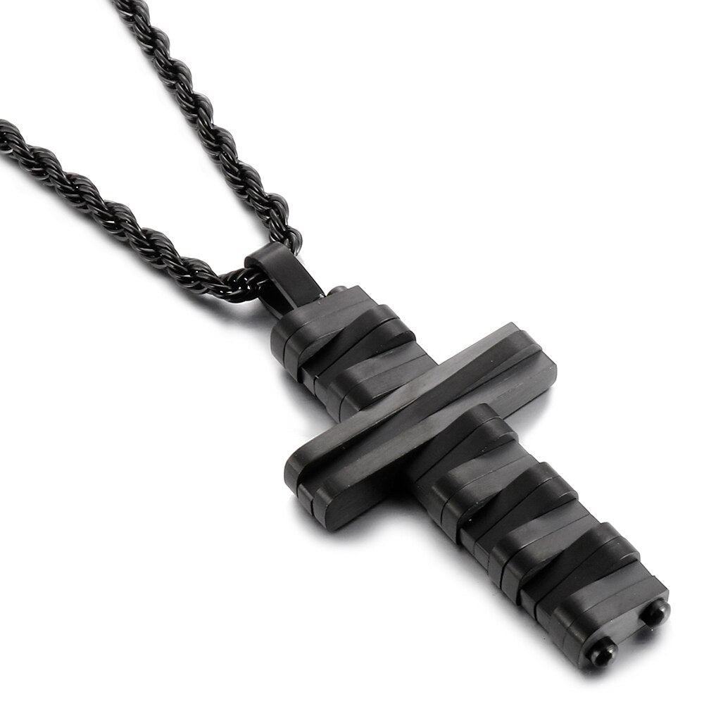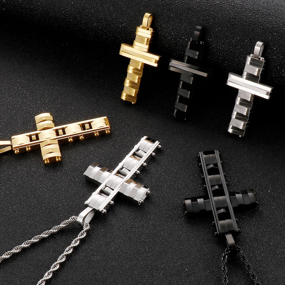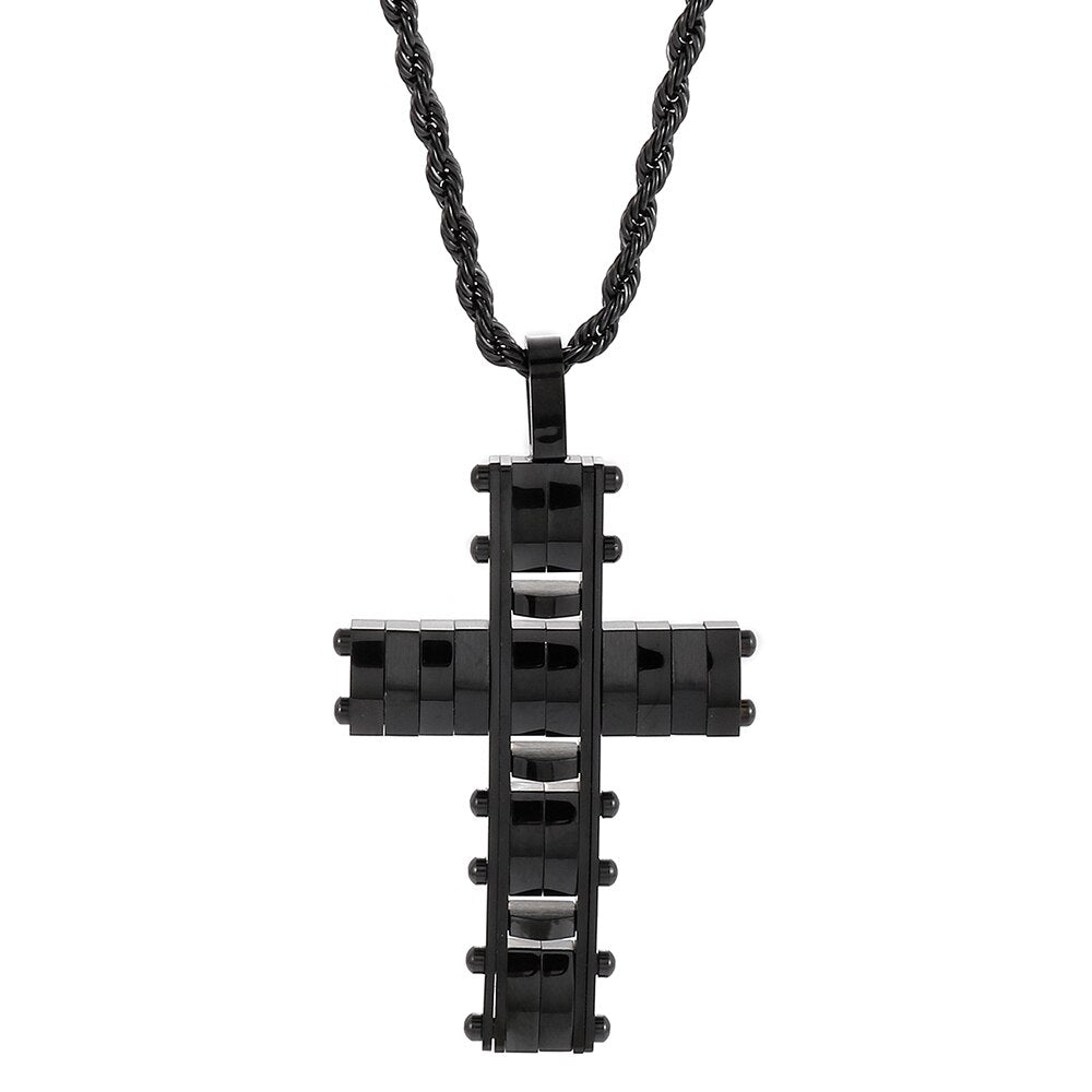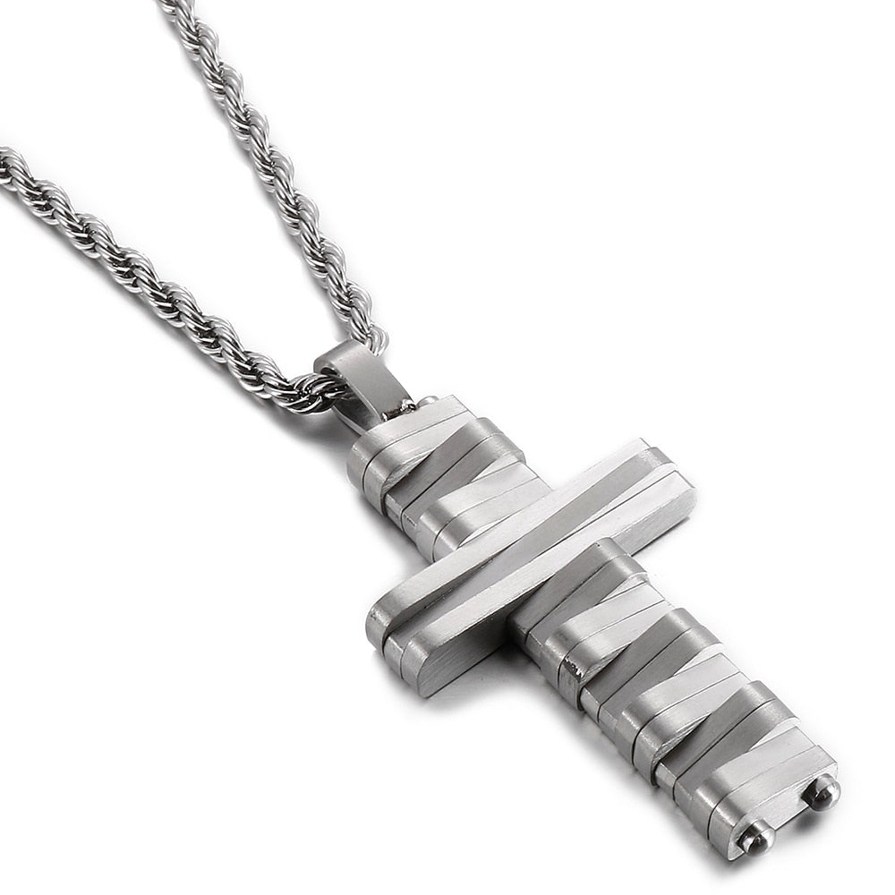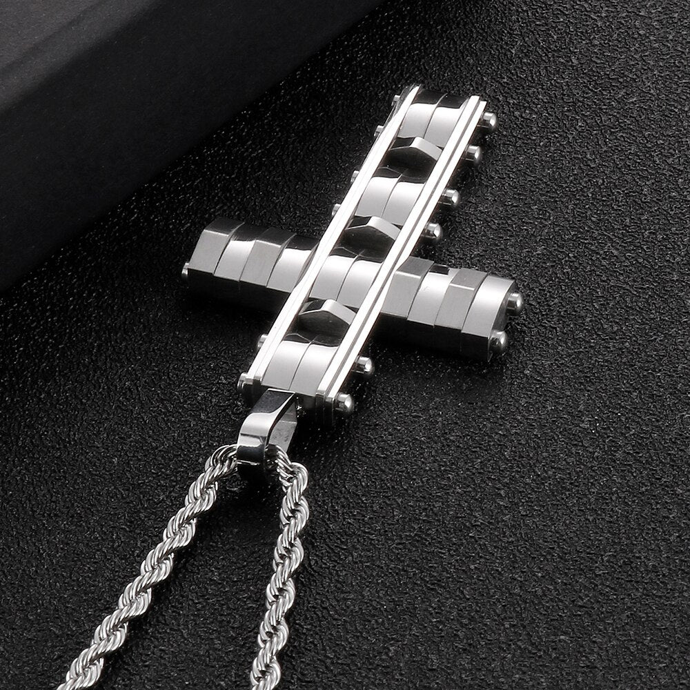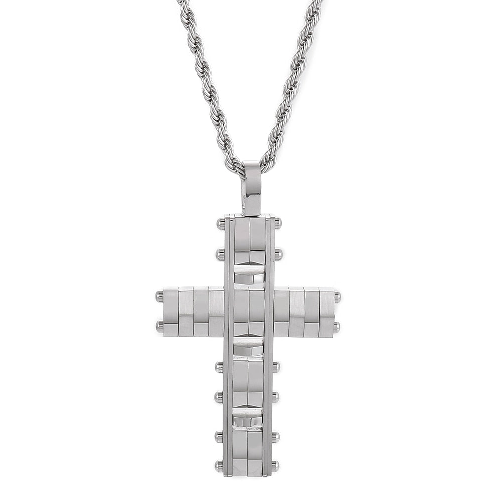 Collar con colgante de cruz de acero inoxidable pulido para hombres y mujeres