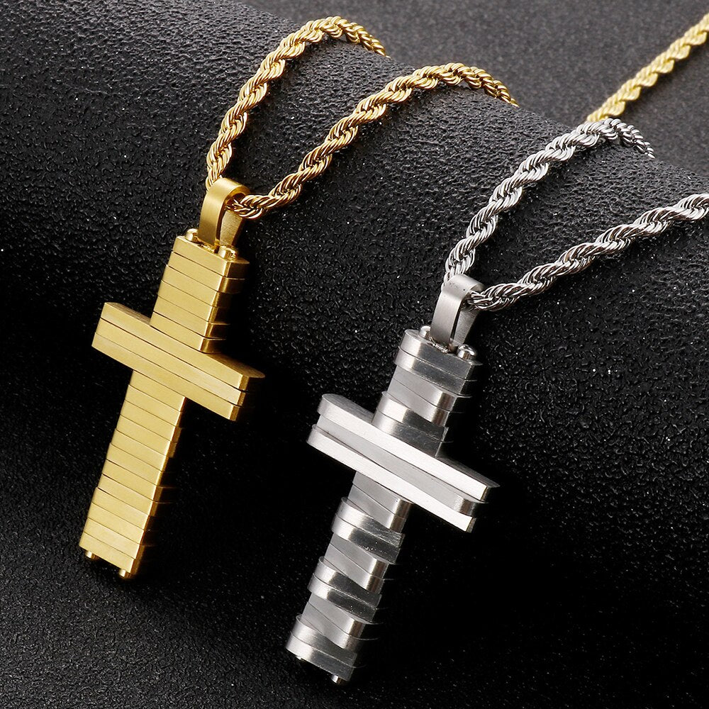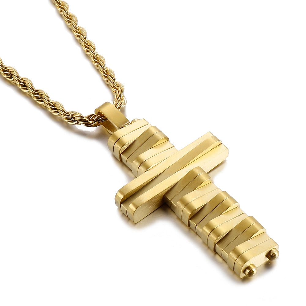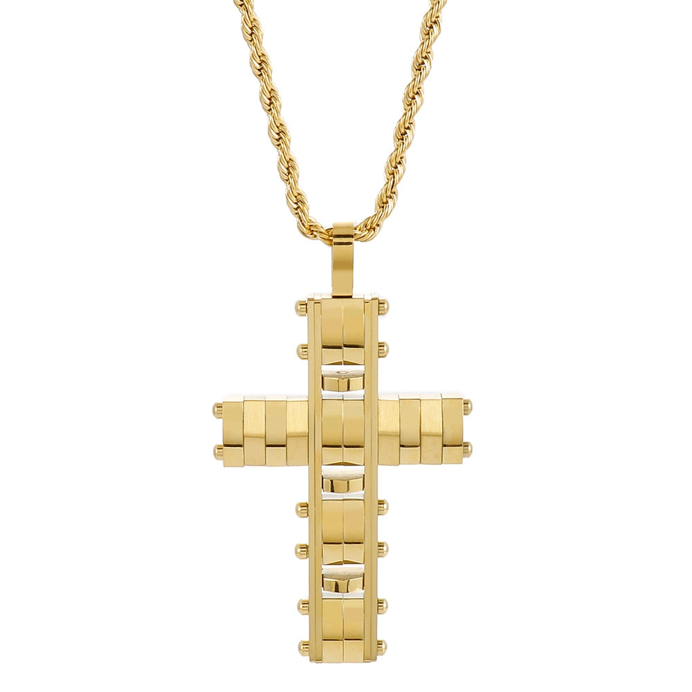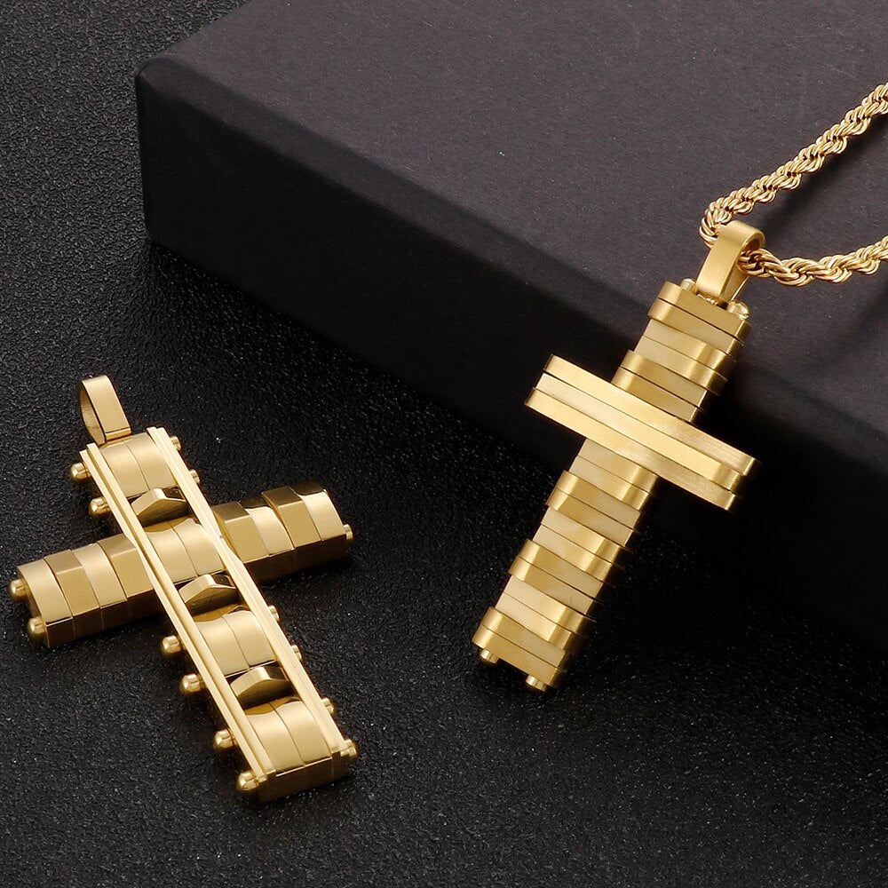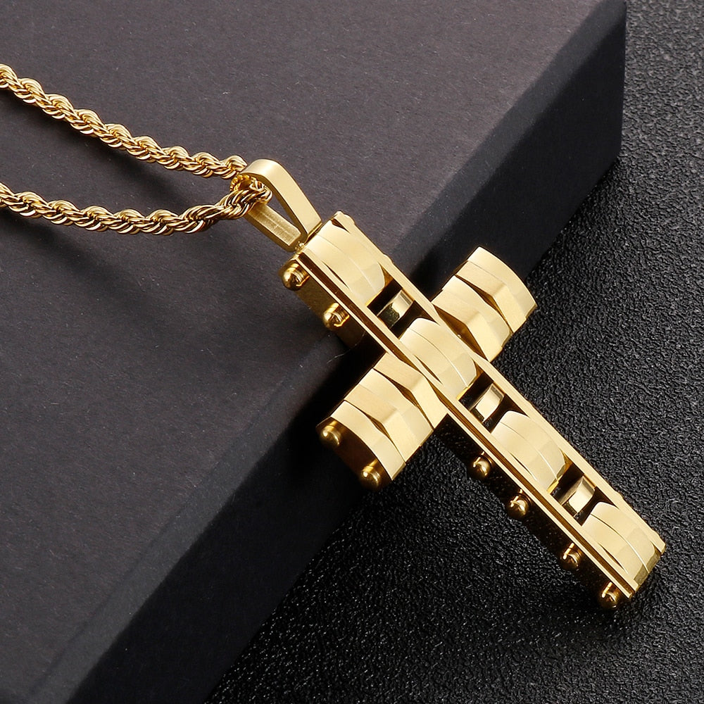 Collar con colgante de cruz de acero inoxidable pulido para hombres y mujeres, joyería religiosa, collares para hombres y mujeres, gargantillas chapadas en oro.