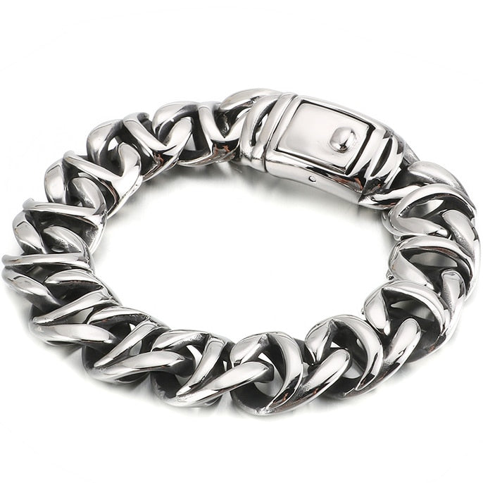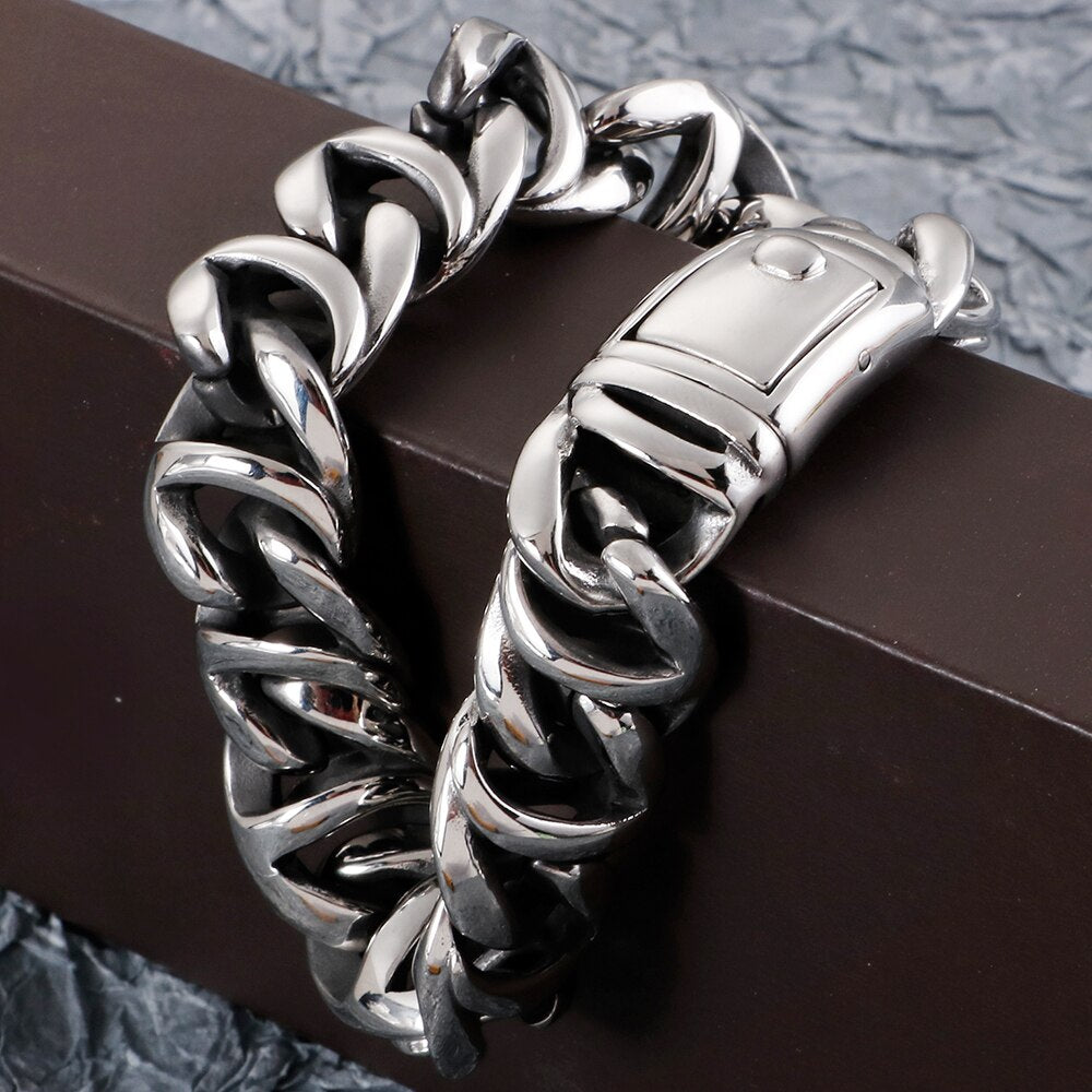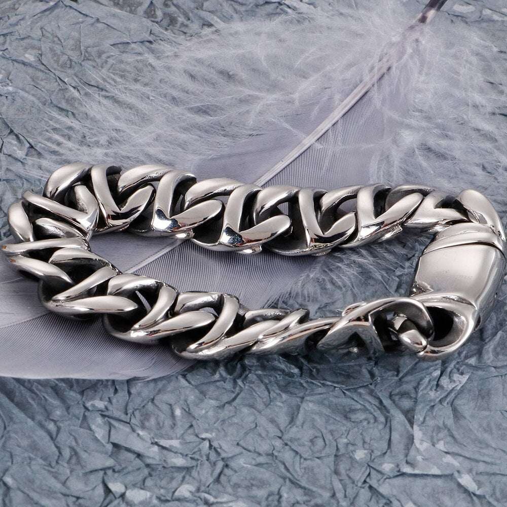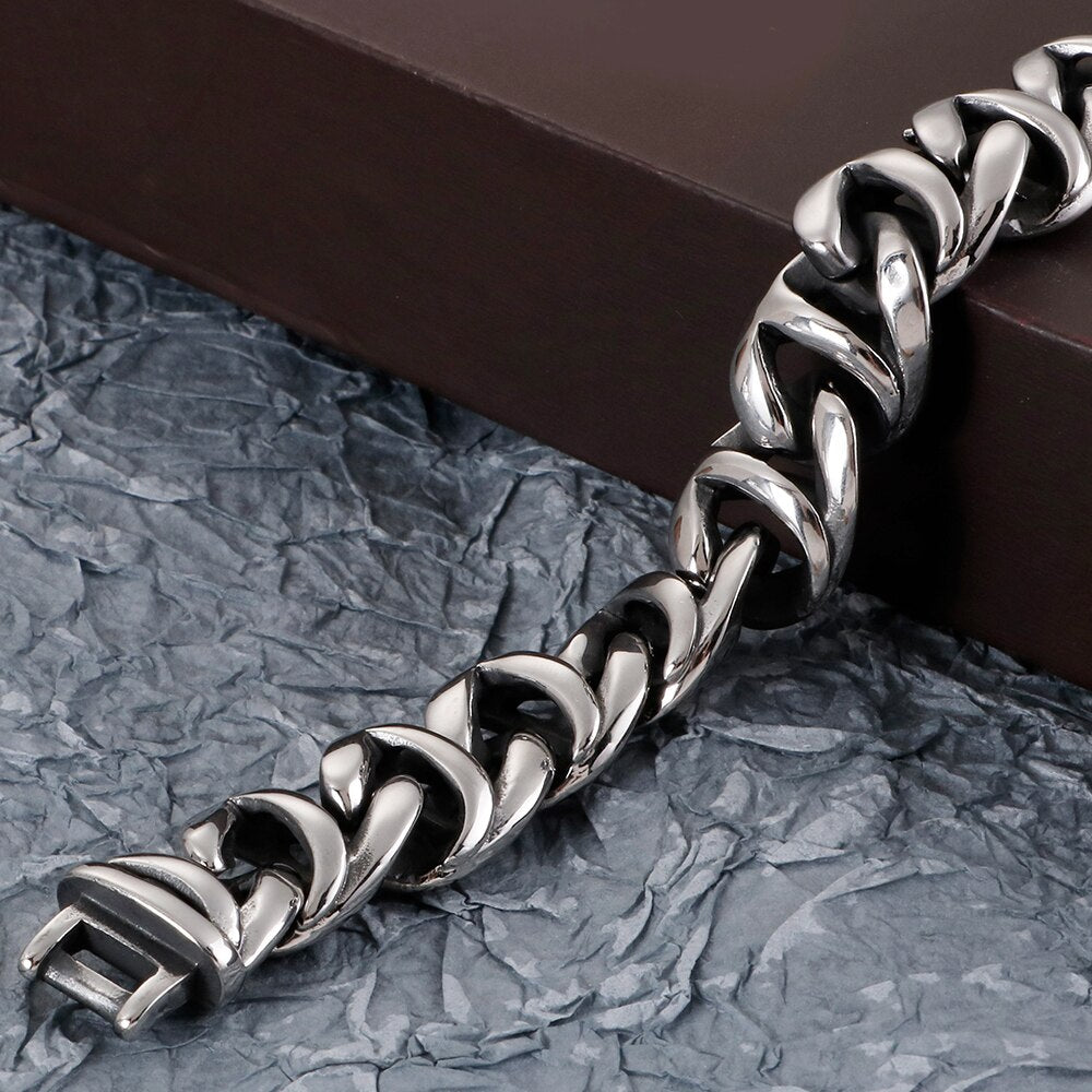 Pulsera de acero inoxidable macizo pulido para hombre. Pulseras de moda para hombre.