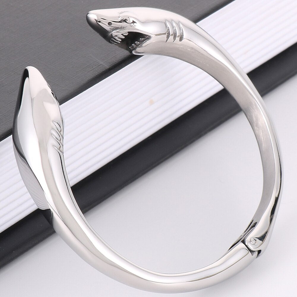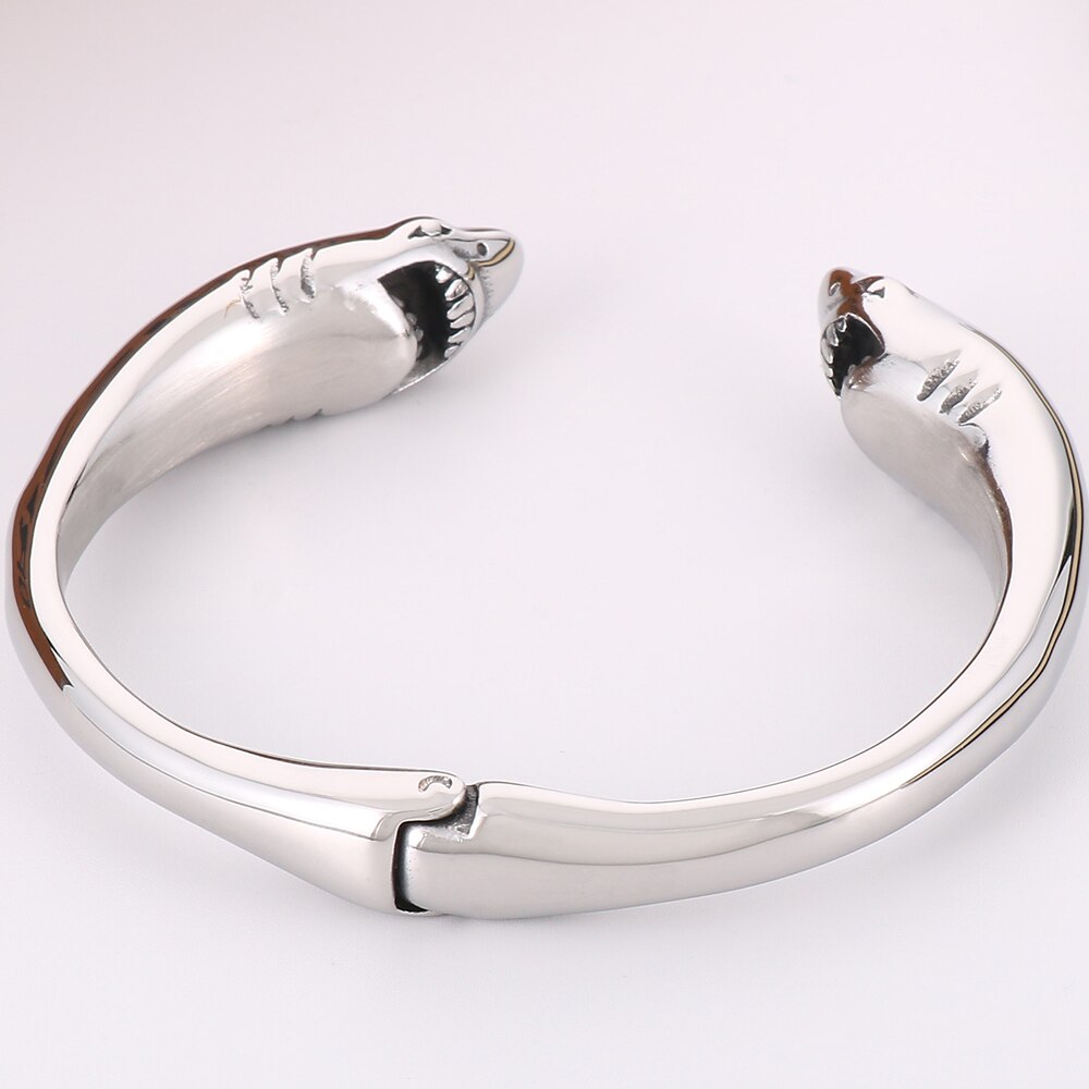 Pulsera de acero inoxidable macizo pulido con doble delfín para hombre, brazalete abierto con dijes, joyería de animales, regalo de cumpleaños