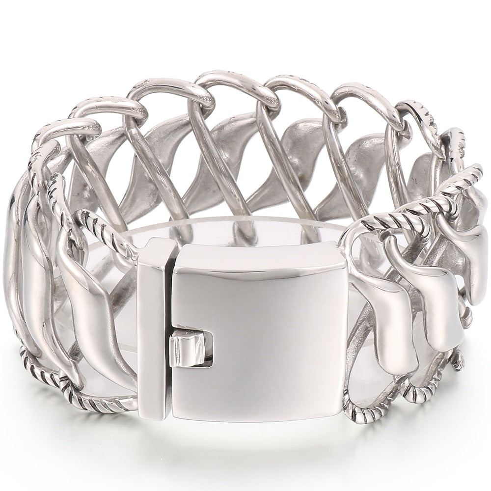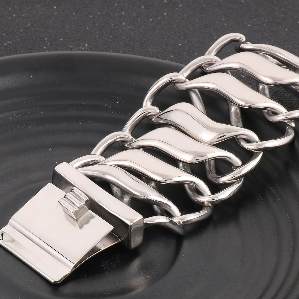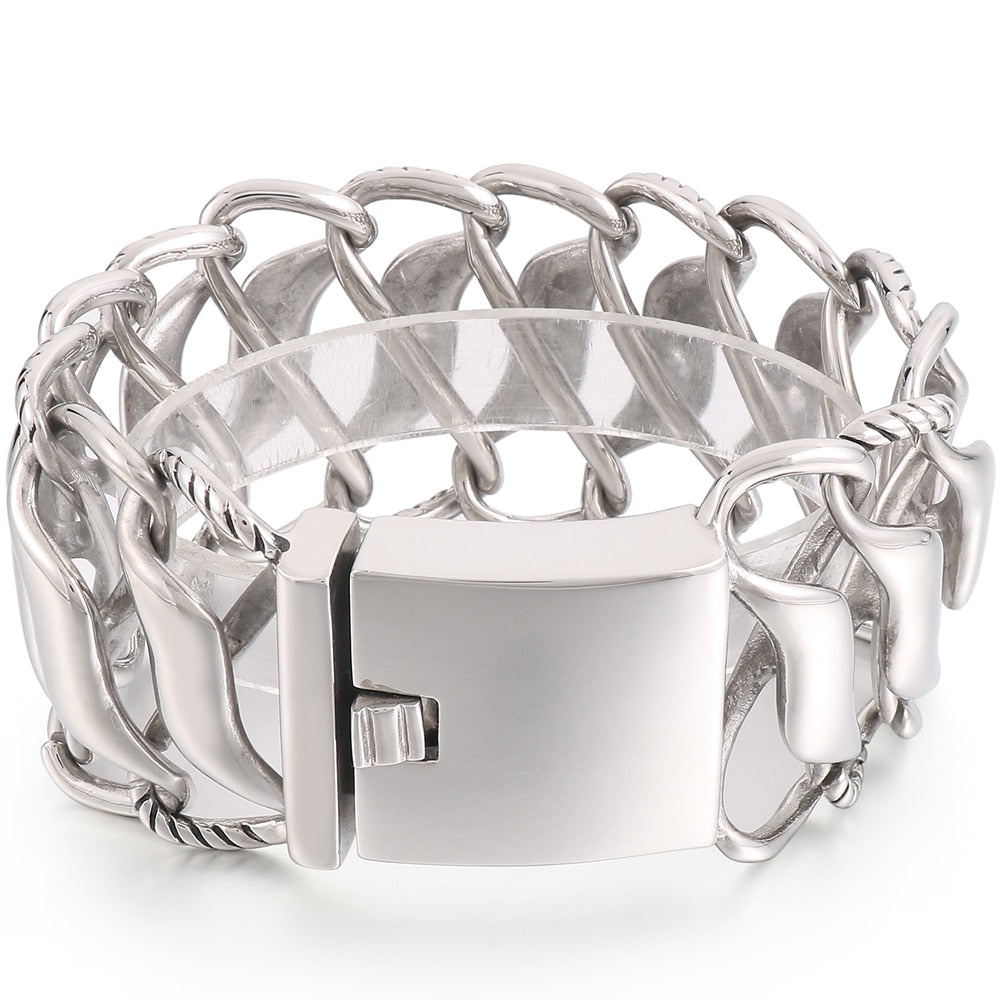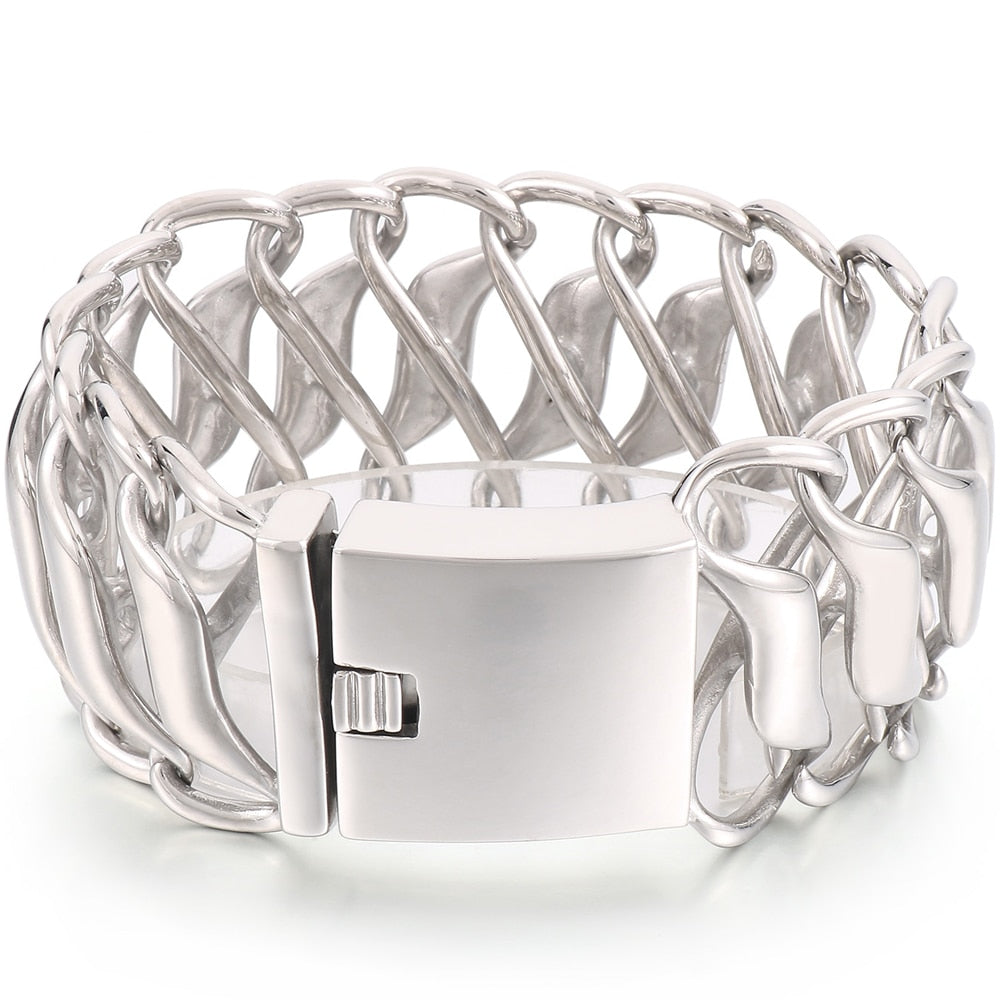 Pulsera de acero inoxidable pulido de 42 mm de ancho con 8 eslabones para hombre.