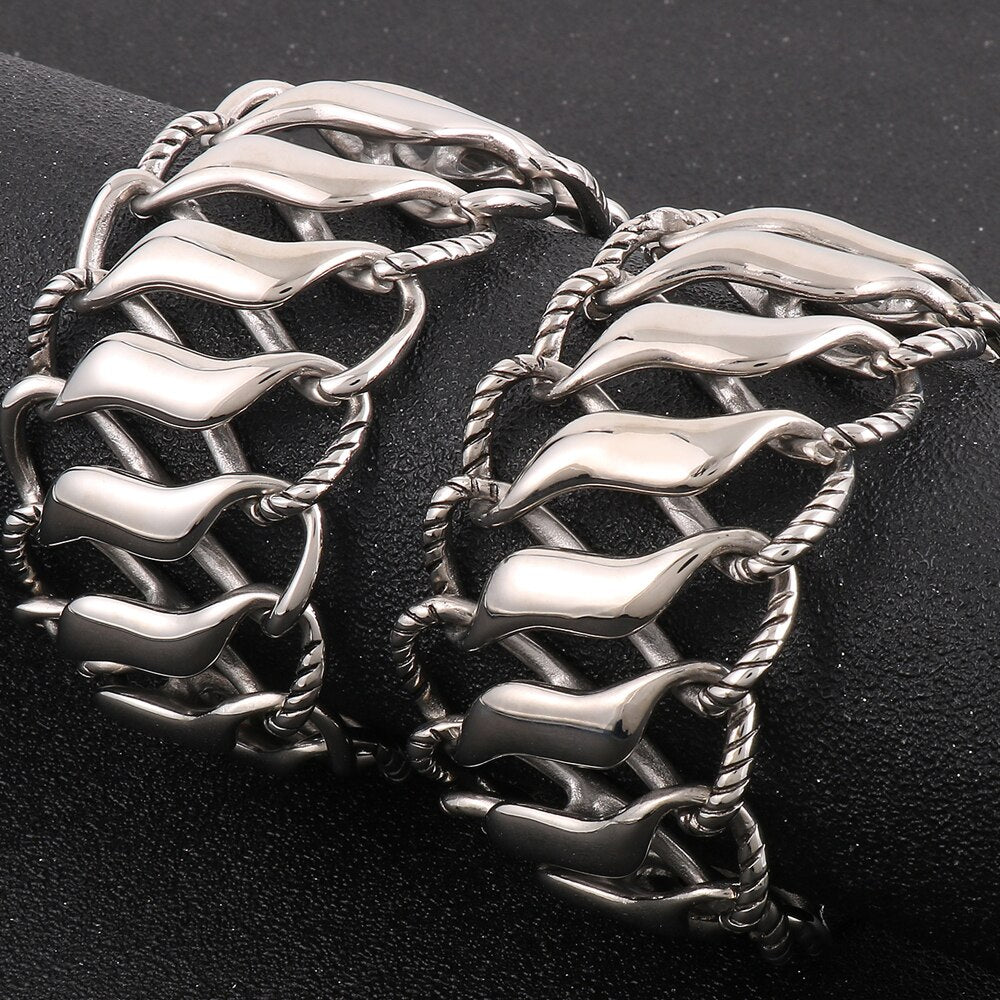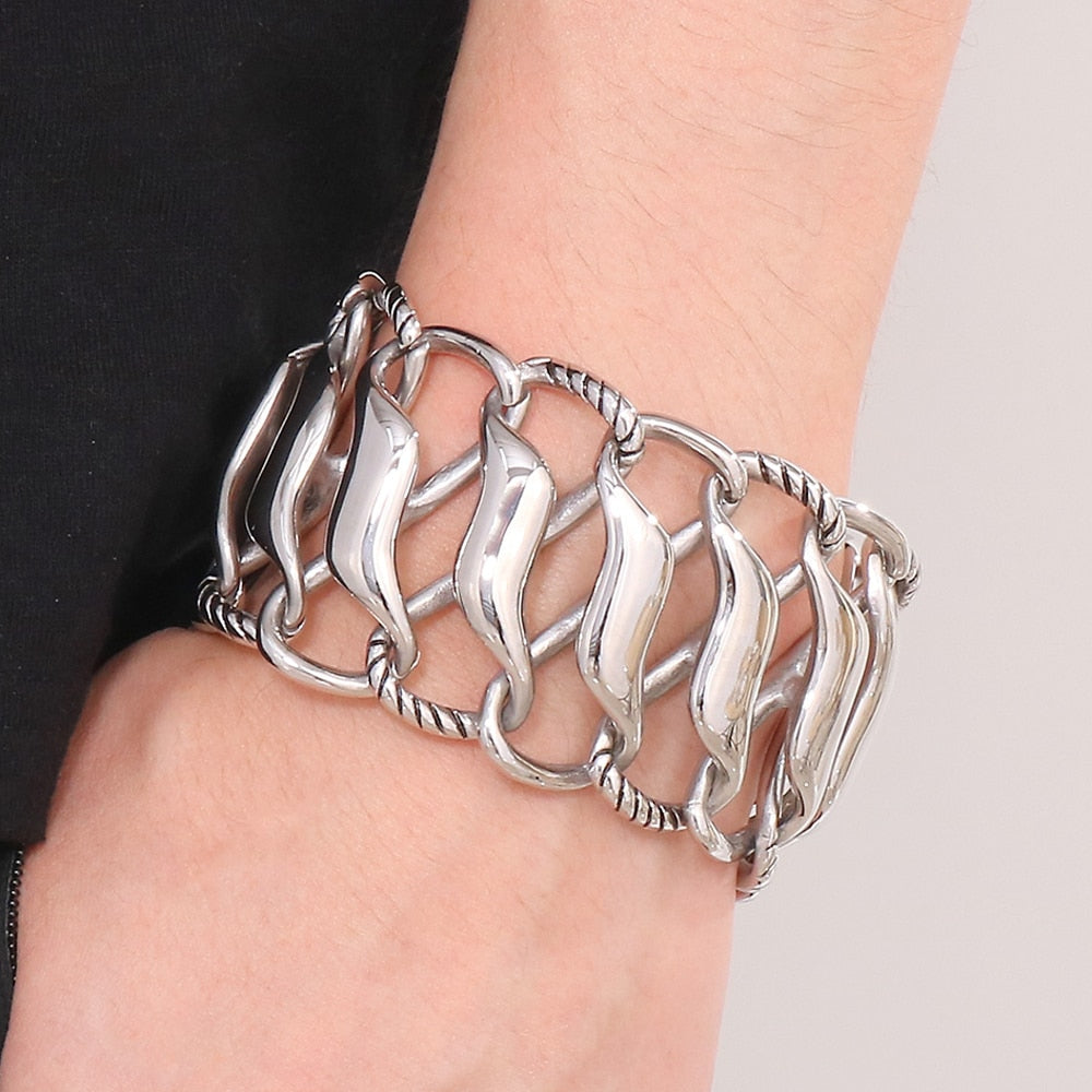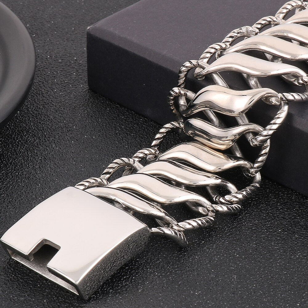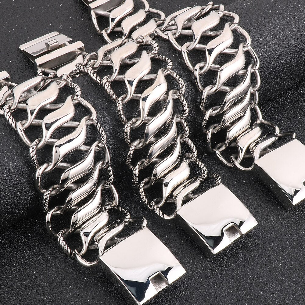 Pulsera de acero inoxidable pulido de 42 mm de ancho con 8 eslabones para hombre.