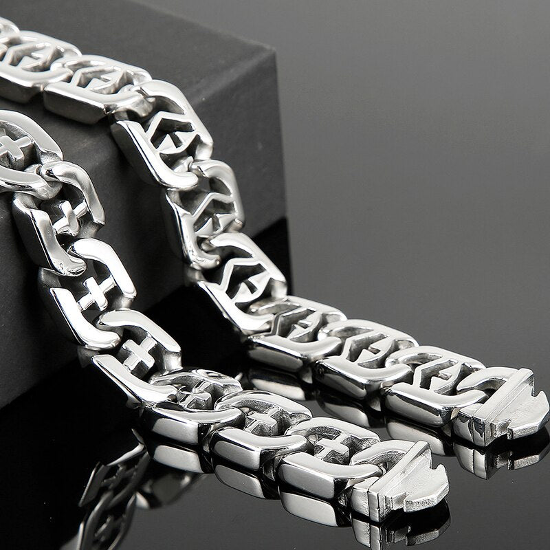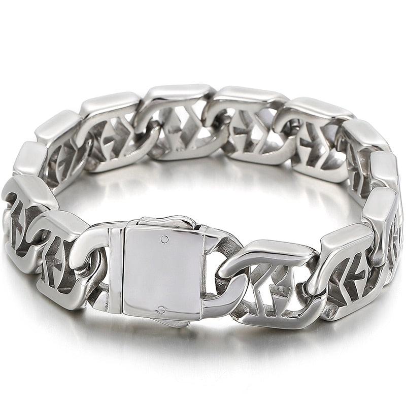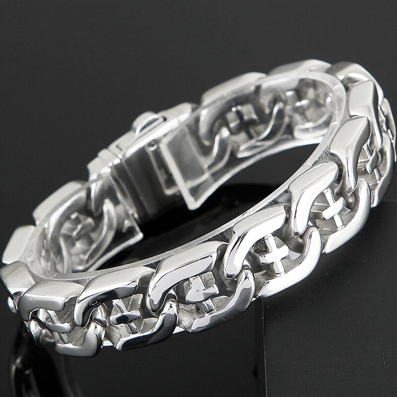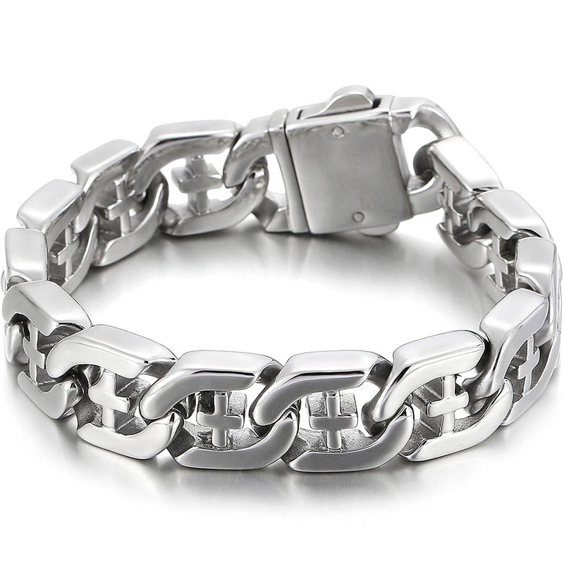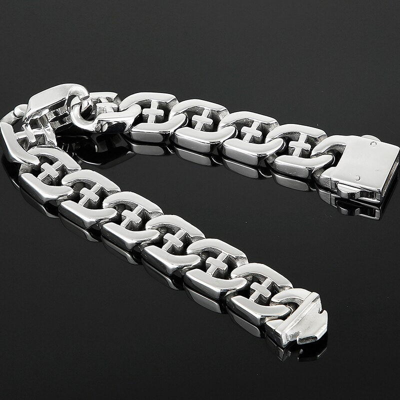 Pulsera de acero inoxidable pulido para hombre, brazalete cruzado, accesorios de joyería, pulseras de cadena.