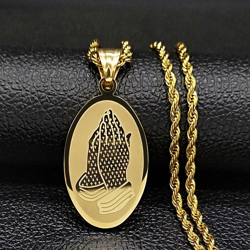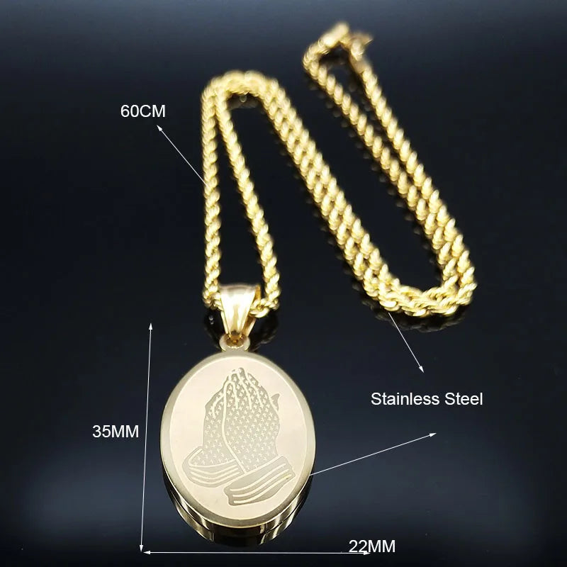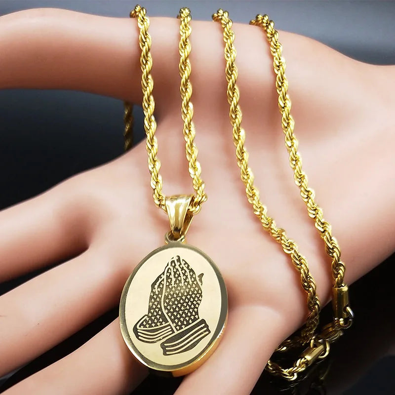 Collar de cadena de acero inoxidable con manos en oración de Jesús para mujer, color dorado, estilo hip hop.