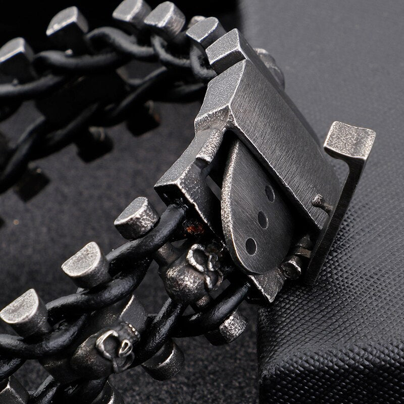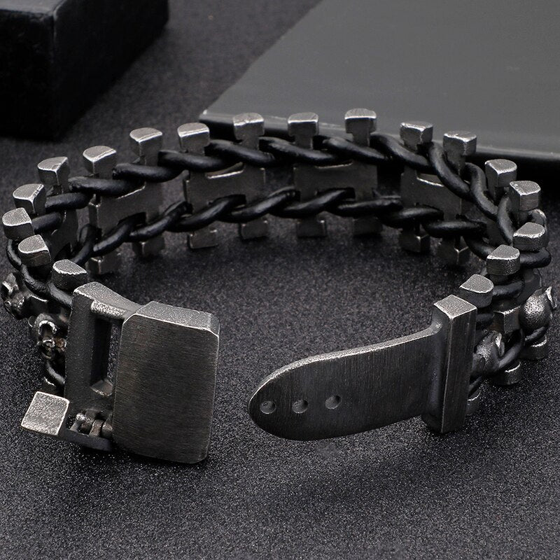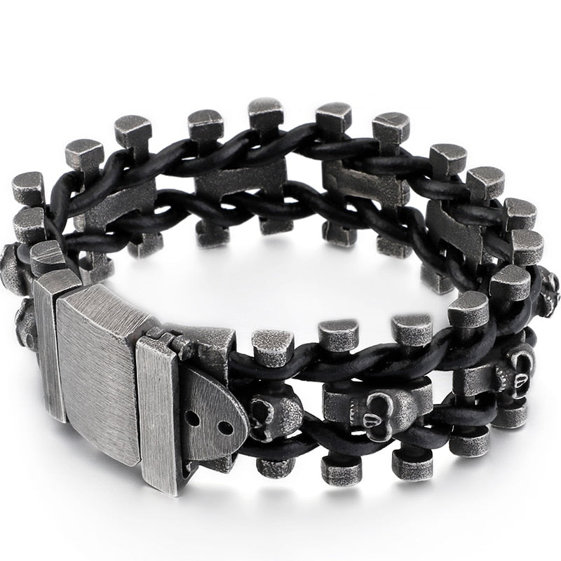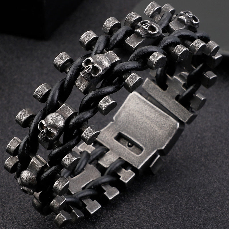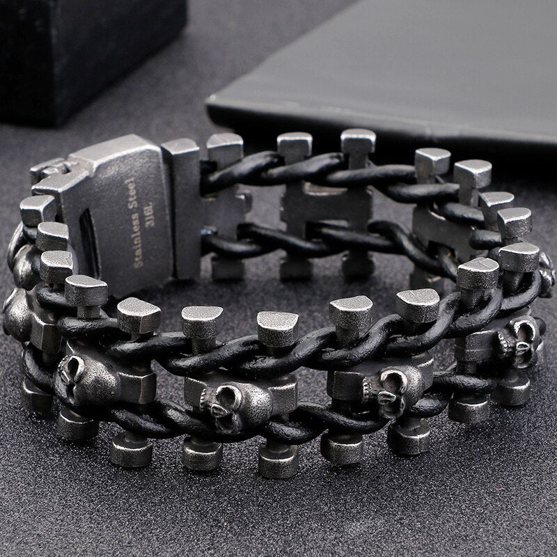 Pulsera de calavera de motociclista de acero inoxidable punk vintage premium para hombre