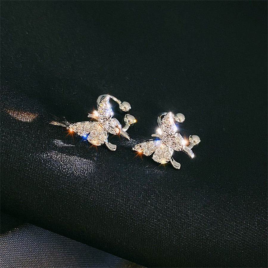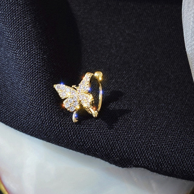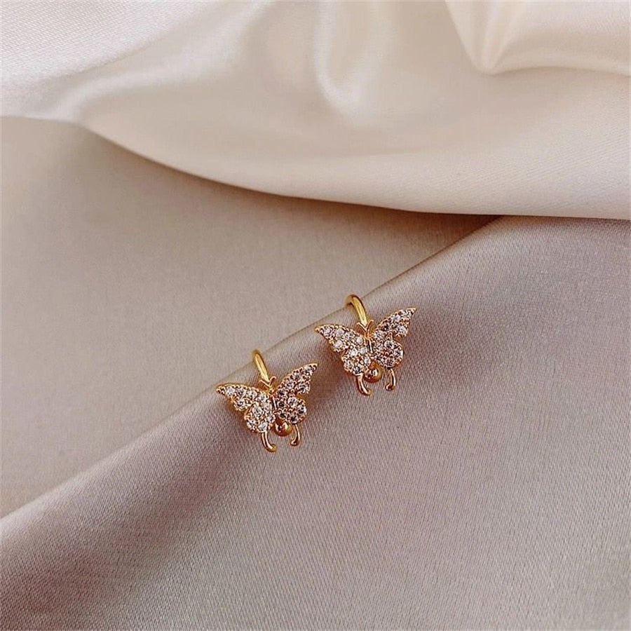 Pendientes de moda: nuevos productos, pendientes de mariposa dorados con diamantes de imitación, bonitos pendientes para mujer, sin perforaciones, pendientes falsos para cartílago, joyería.