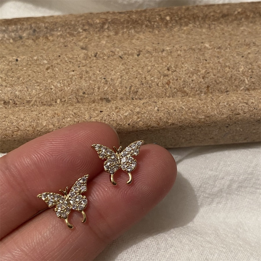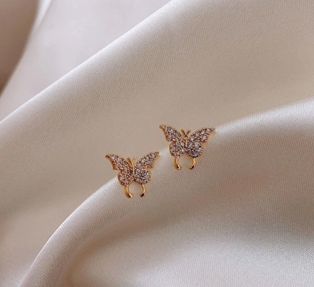 Productos Pendientes de mariposa de color dorado con diseño de mariposa y diamantes de imitación