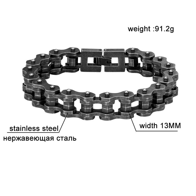 Pulsera de cadena de bicicleta punk retro de acero inoxidable pesado para hombre