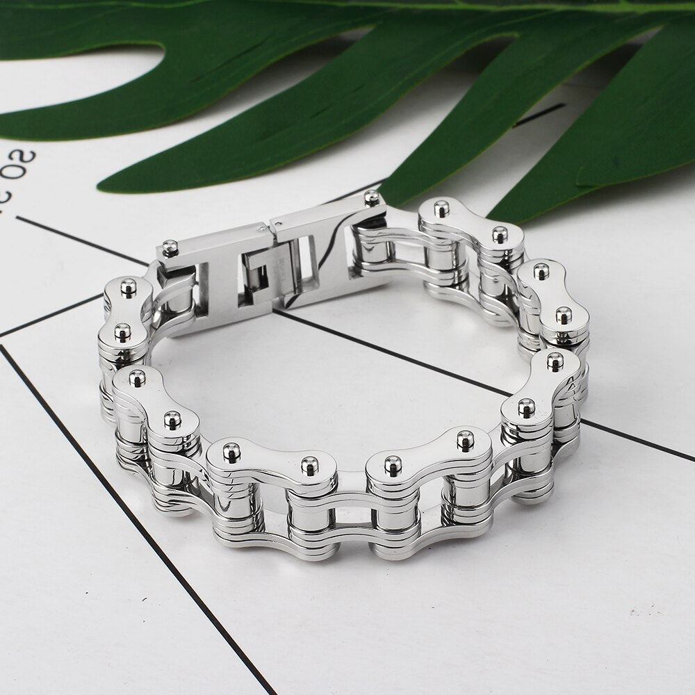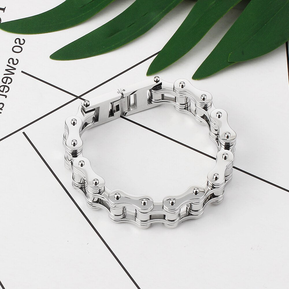 Pulsera de motociclista punk de acero inoxidable 316L para hombre y mujer, joyería de moda, cadena y eslabones de color plateado, pulseras de bicicleta.