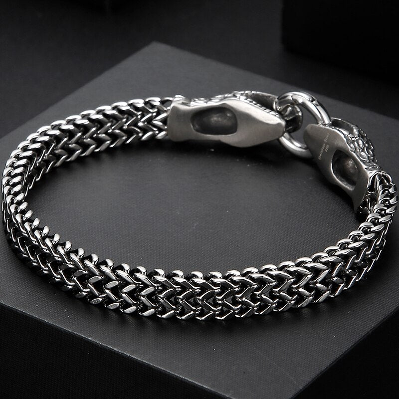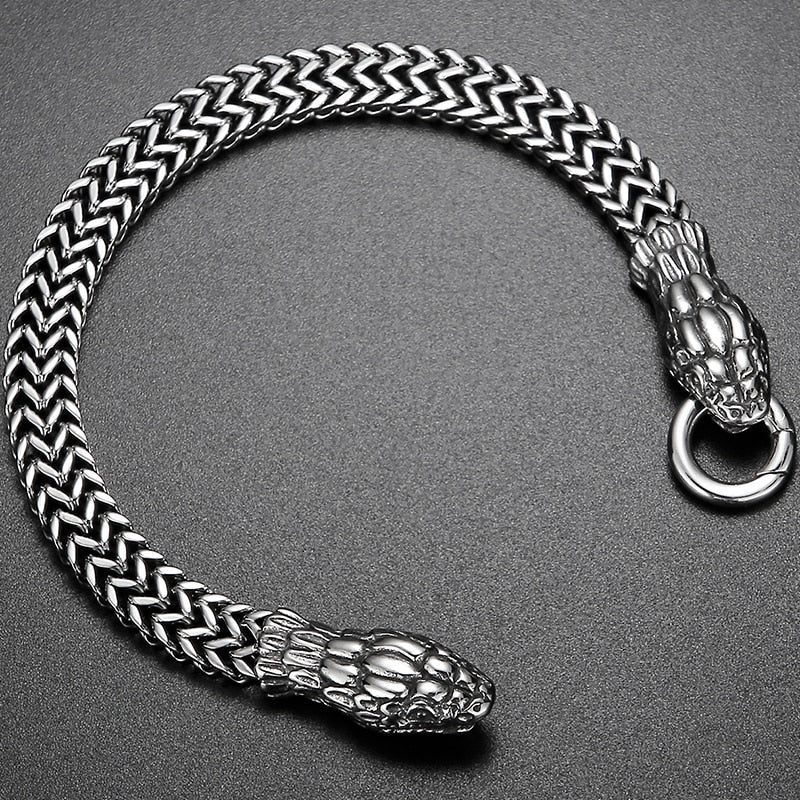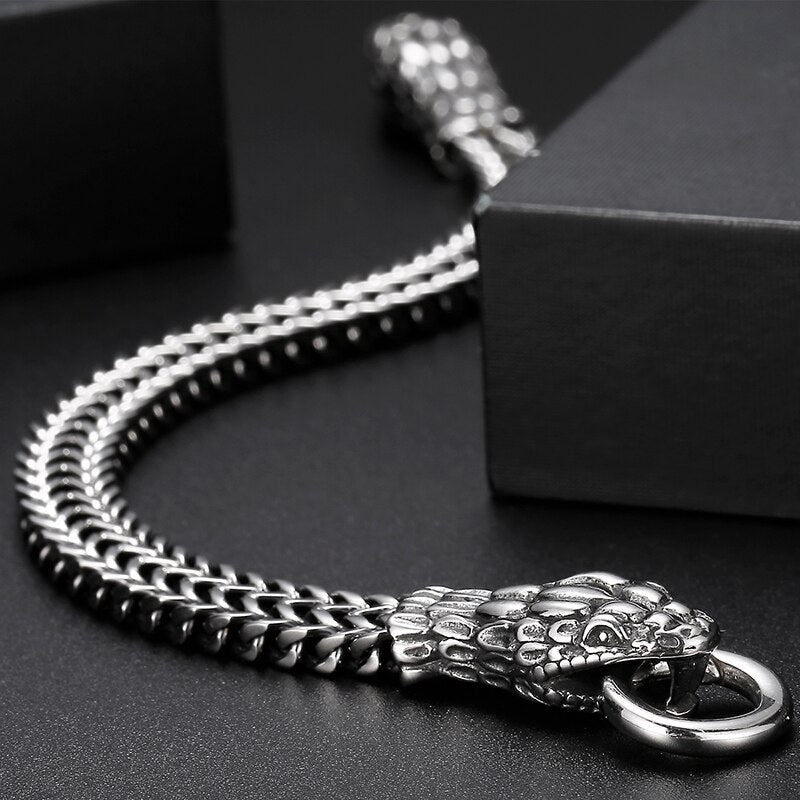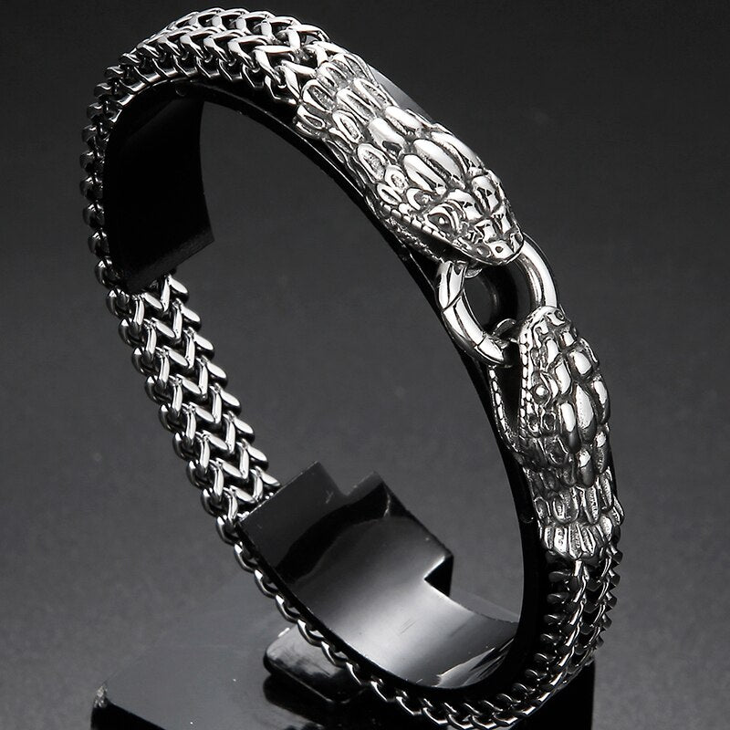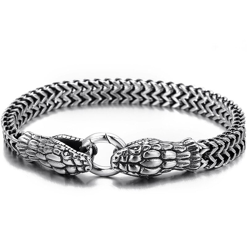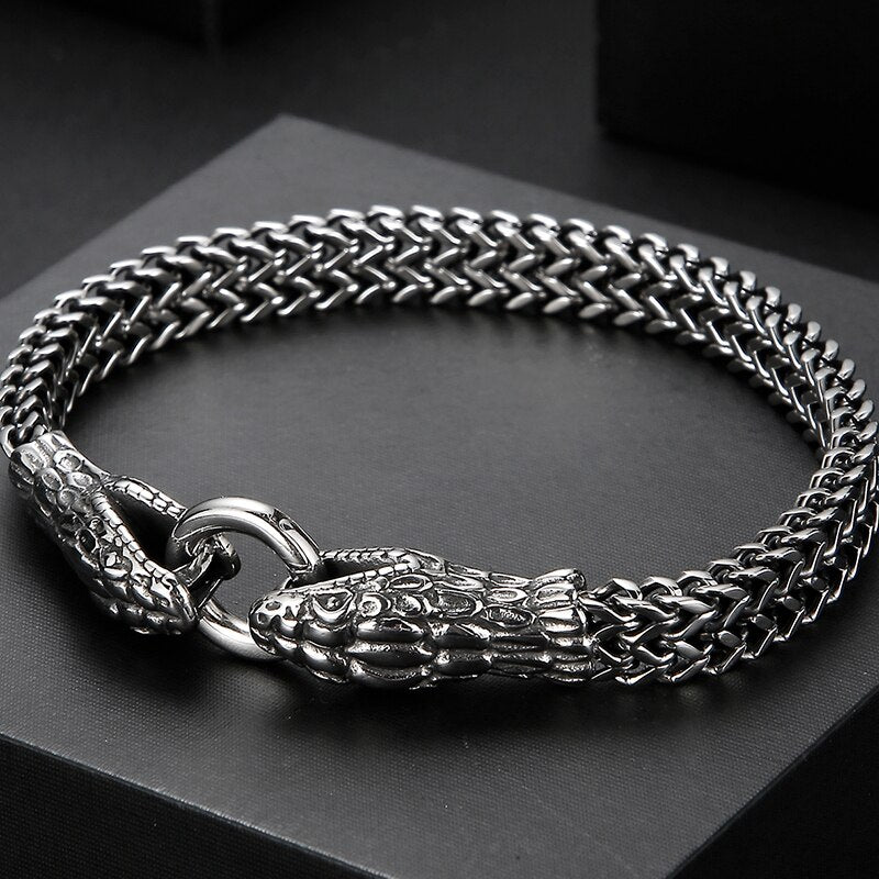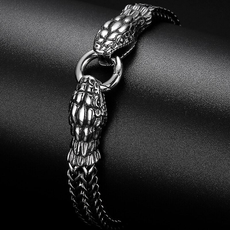 Pulsera punk con doble cabeza de serpiente para hombre, cadena de eslabones de acero inoxidable 316L.