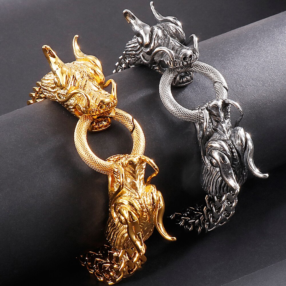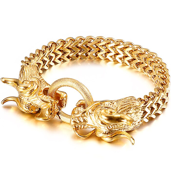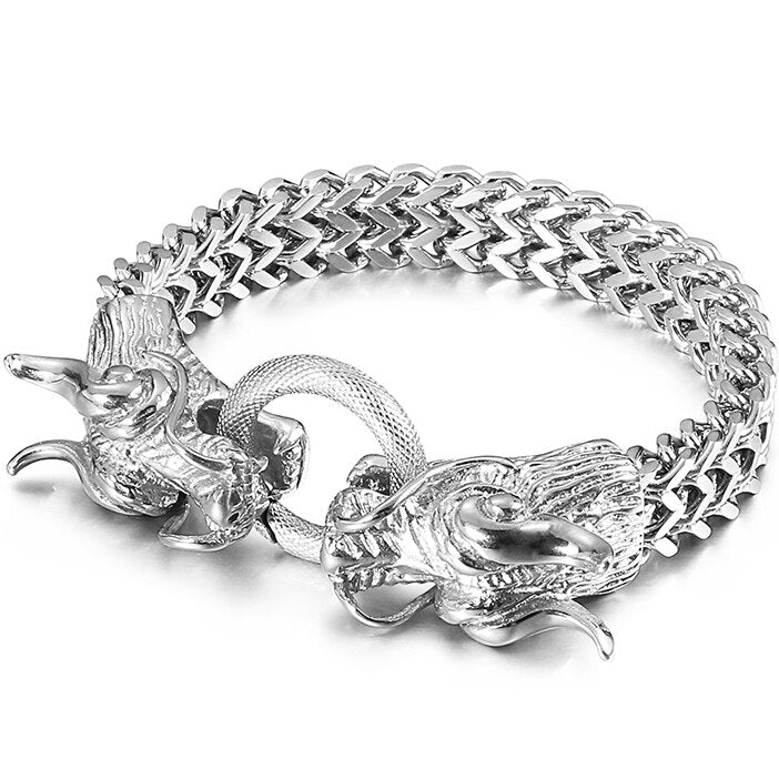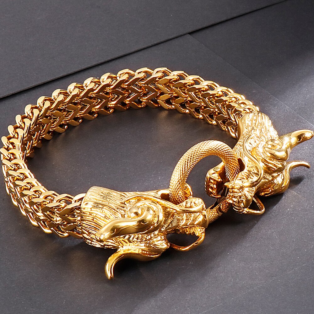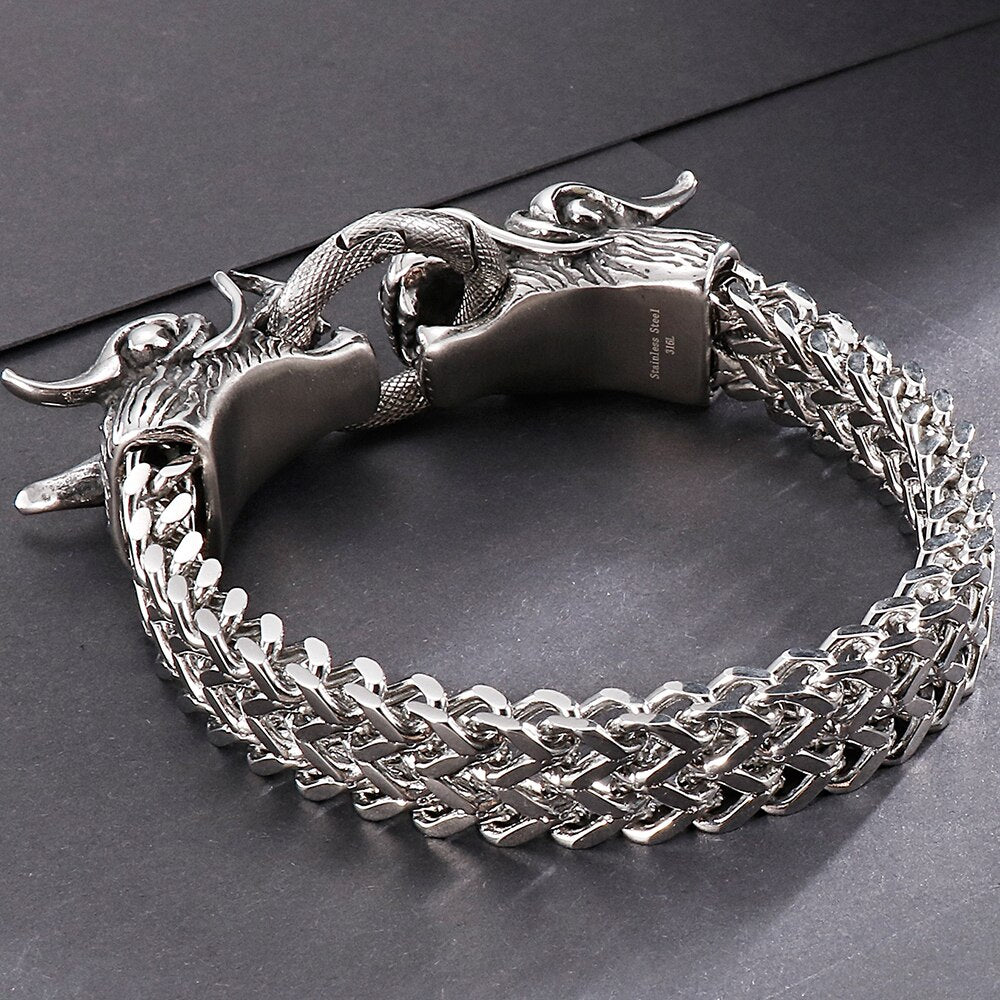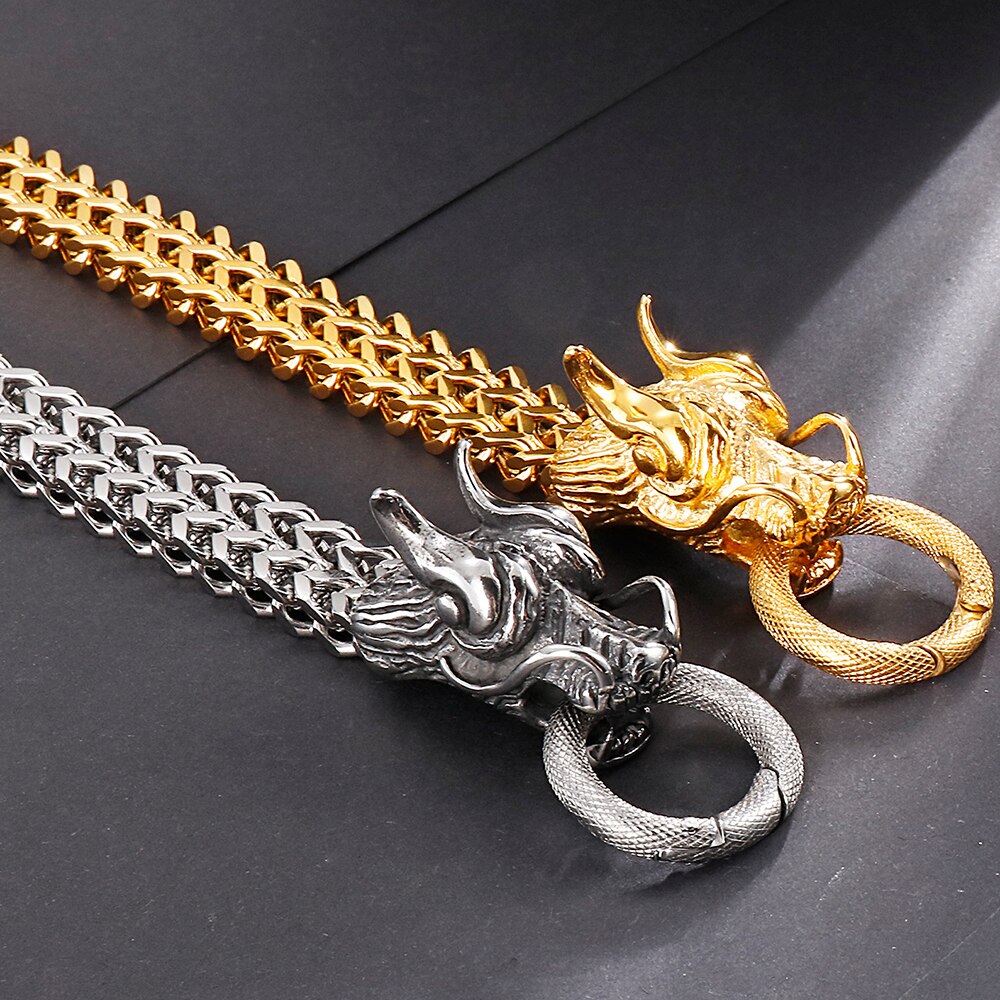 Pulsera Punk con cabeza de dragón para hombre en acero inoxidable, cadena de eslabones Franco de 11 mm de ancho.
