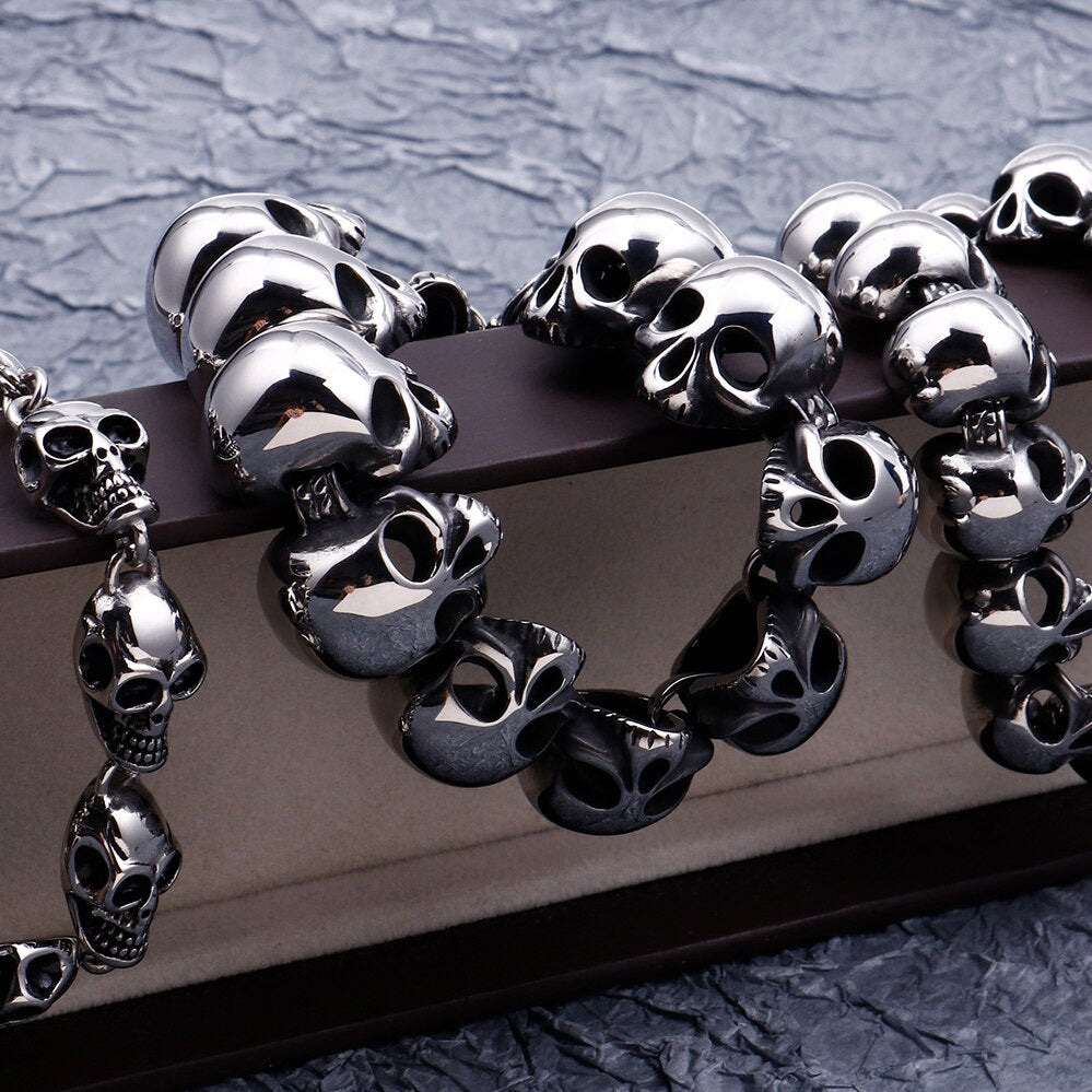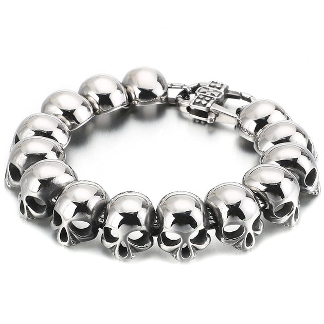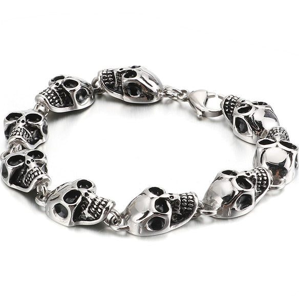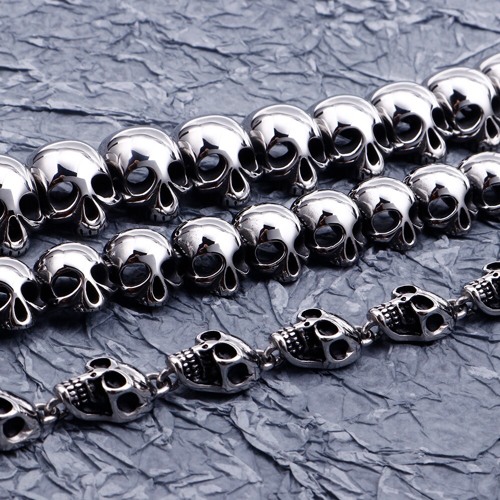 Pulsera de calavera punk gótica de 20/22/23 cm de largo en acero inoxidable de alta calidad para hombre, joyería de esqueleto, pulseras de la amistad para hombre.