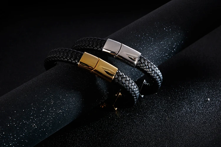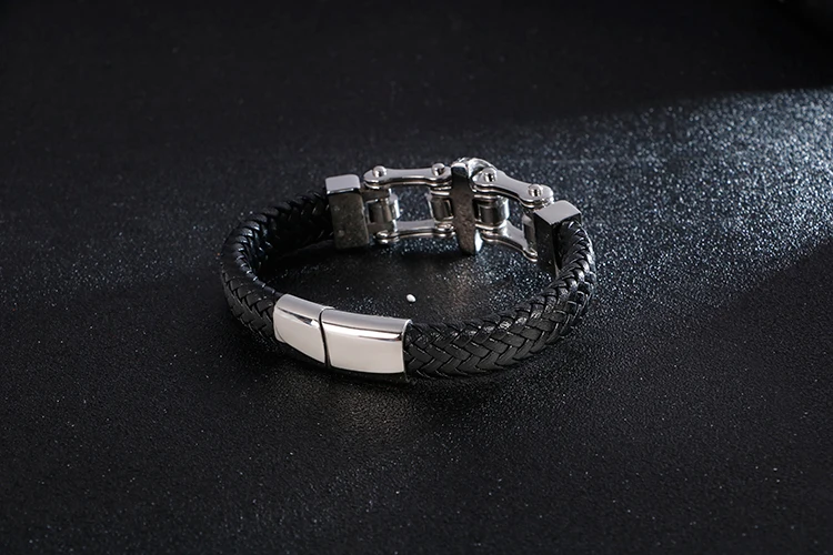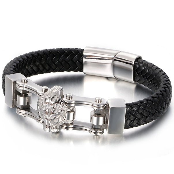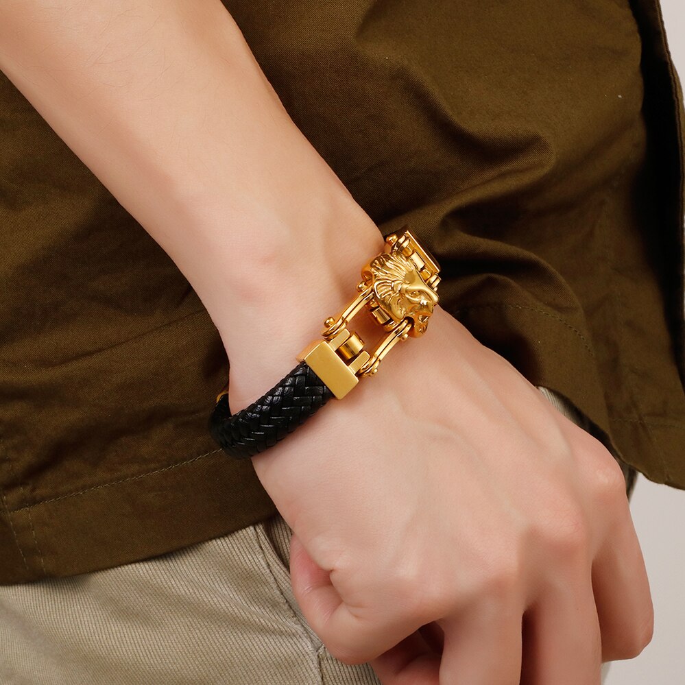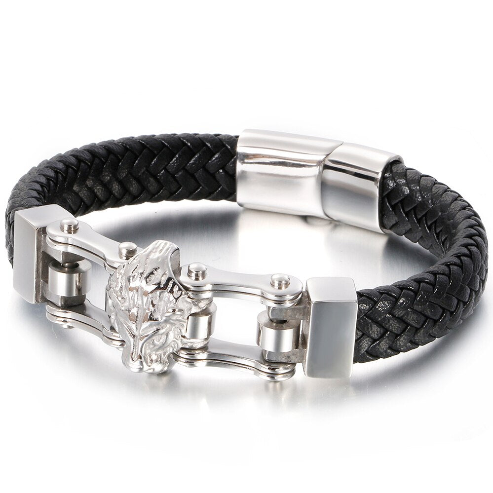 Pulseras y brazaletes punk góticos con cabeza de león para hombre, pulsera trenzada de cuero genuino