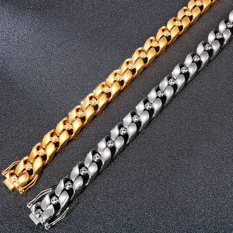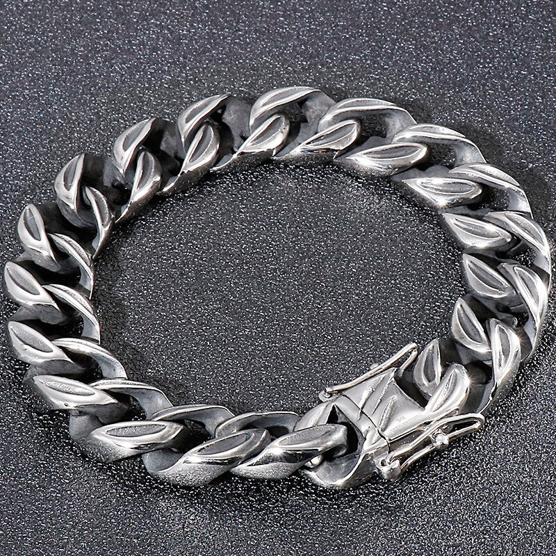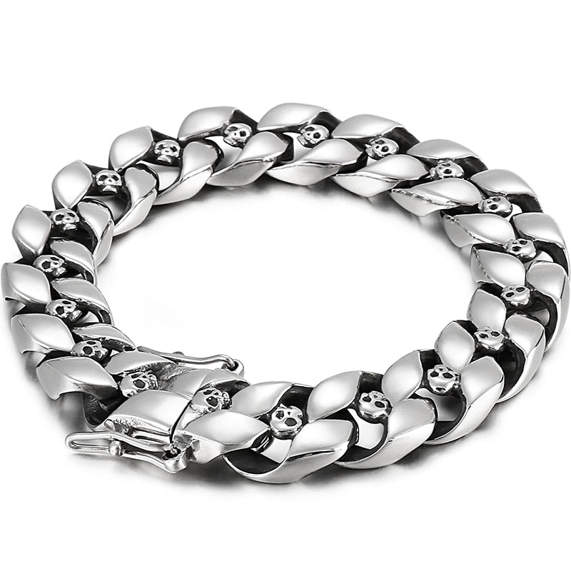 Pulsera de cadena de eslabones estilo punk gótico de acero inoxidable con calavera para hombre, 13 mm (8,5 pulgadas), estilo motero.