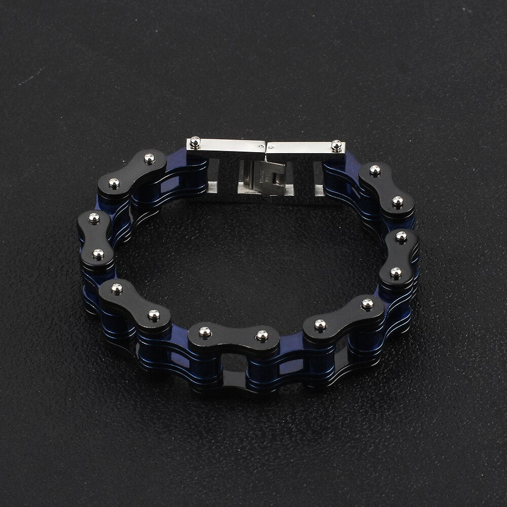 Pulsera de cadena de motociclista para hombre, joyería punk, de 16 mm, de acero de titanio, resistente al agua, color negro y azul, personalizable.