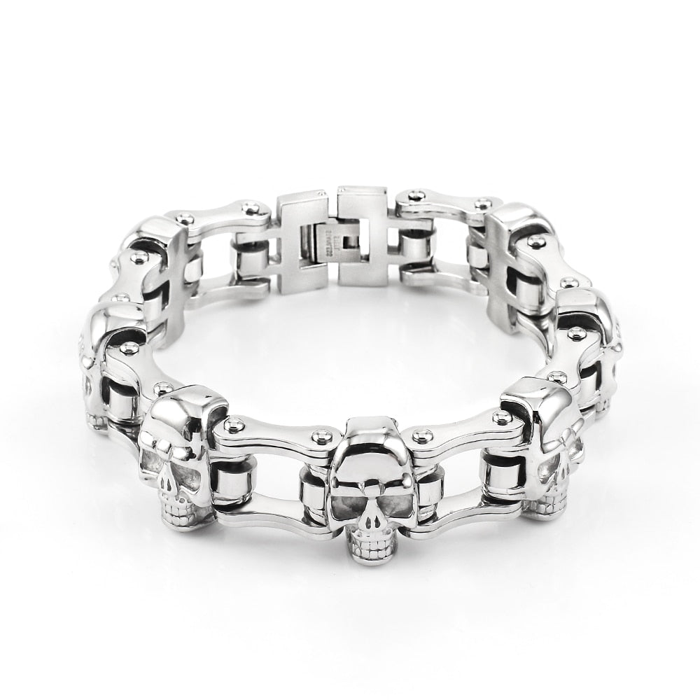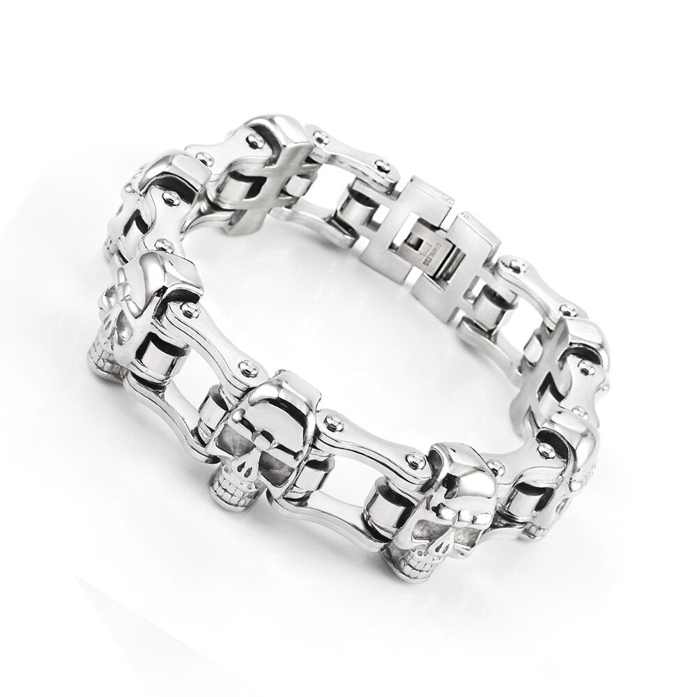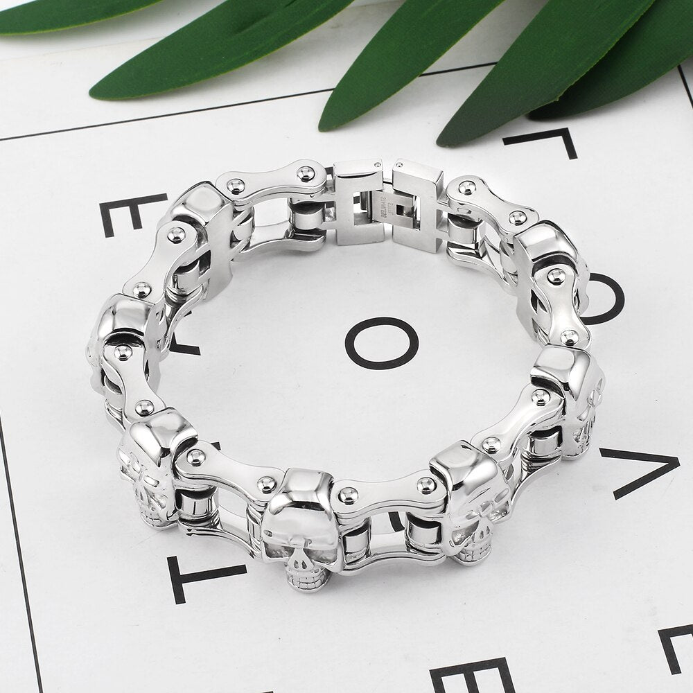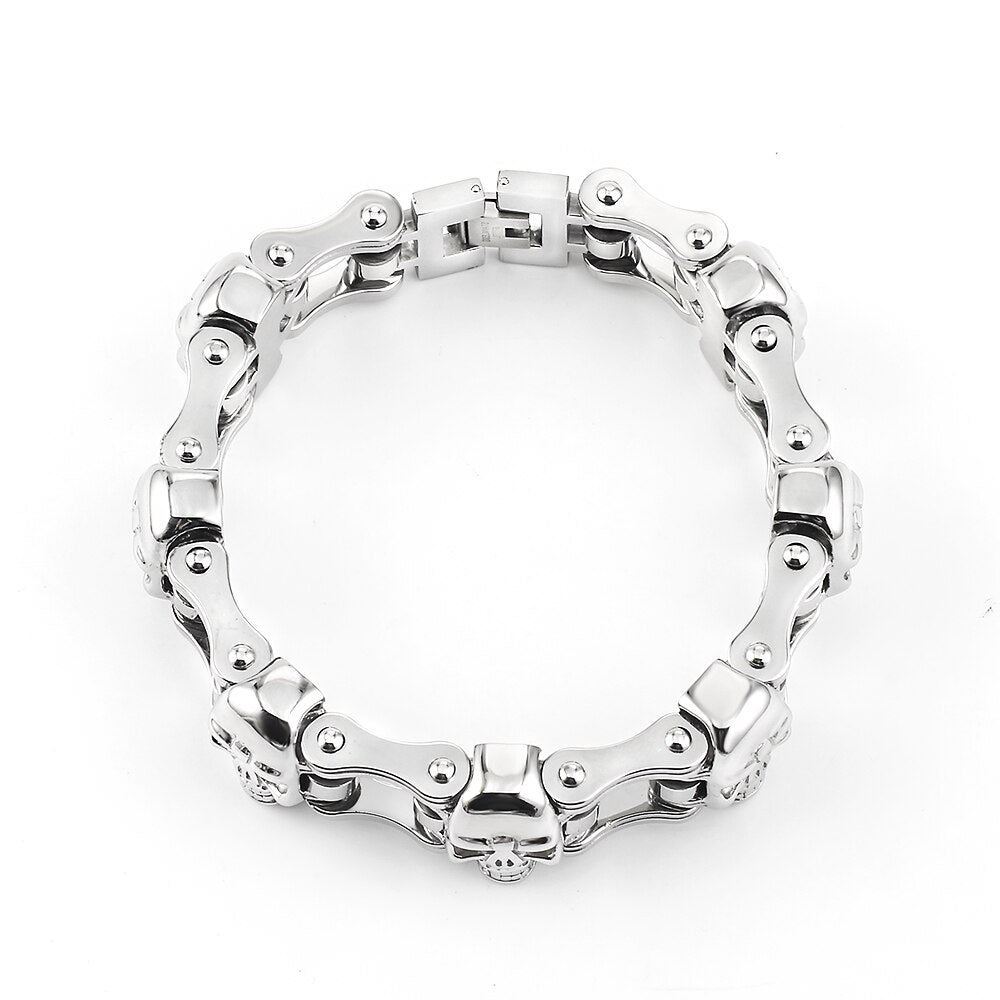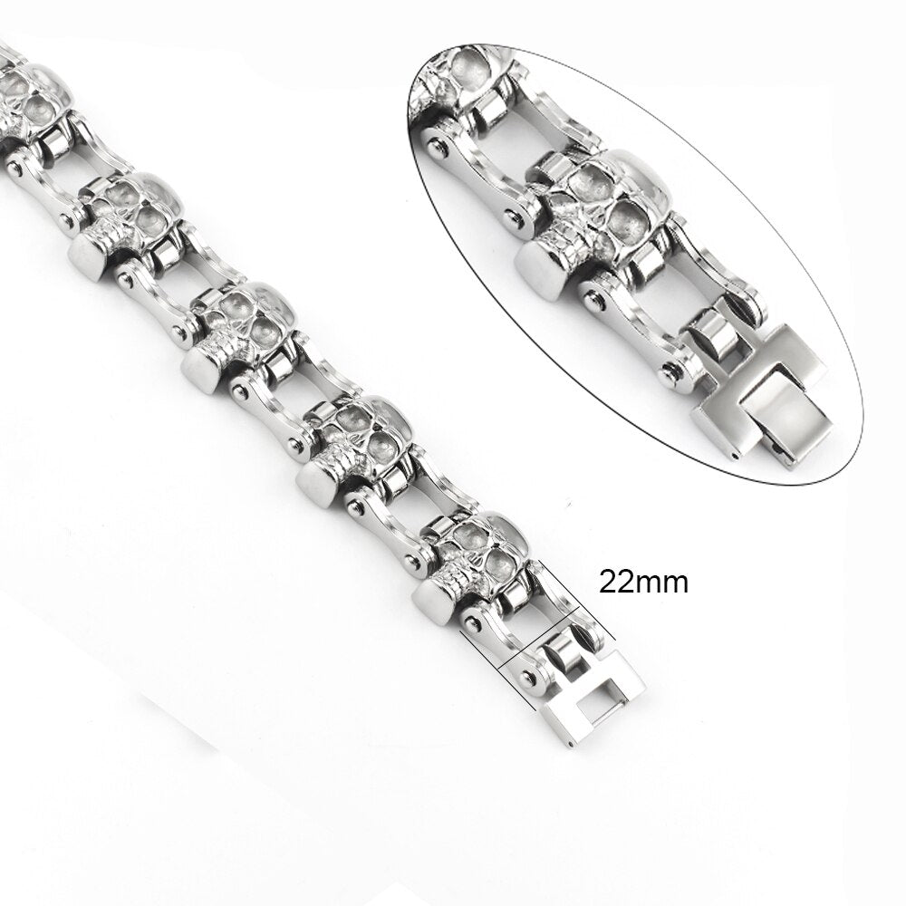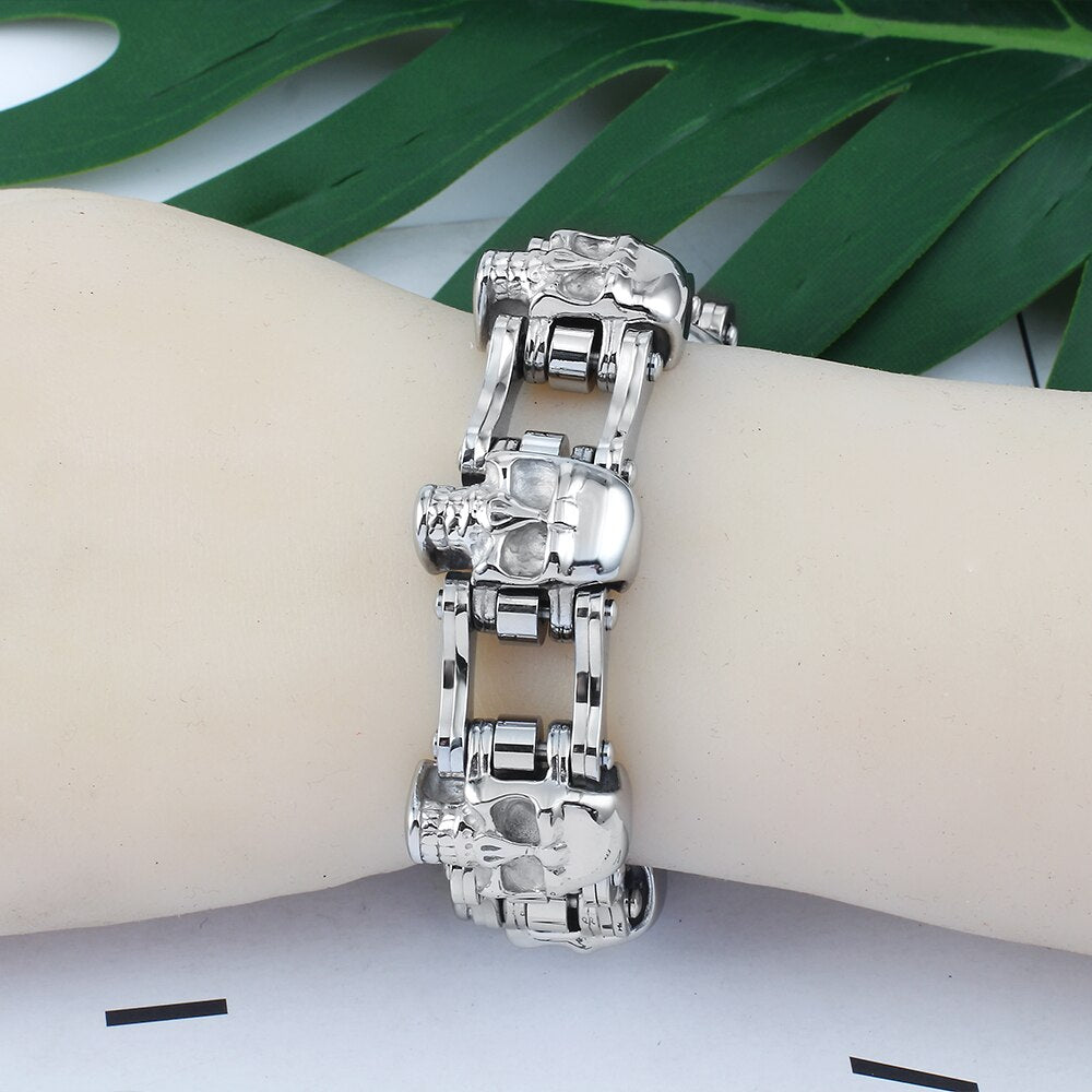 Pulsera de acero inoxidable con cadena de motocicleta para hombre, estilo punk, con calaveras de motociclista, para bicicleta, con eslabones